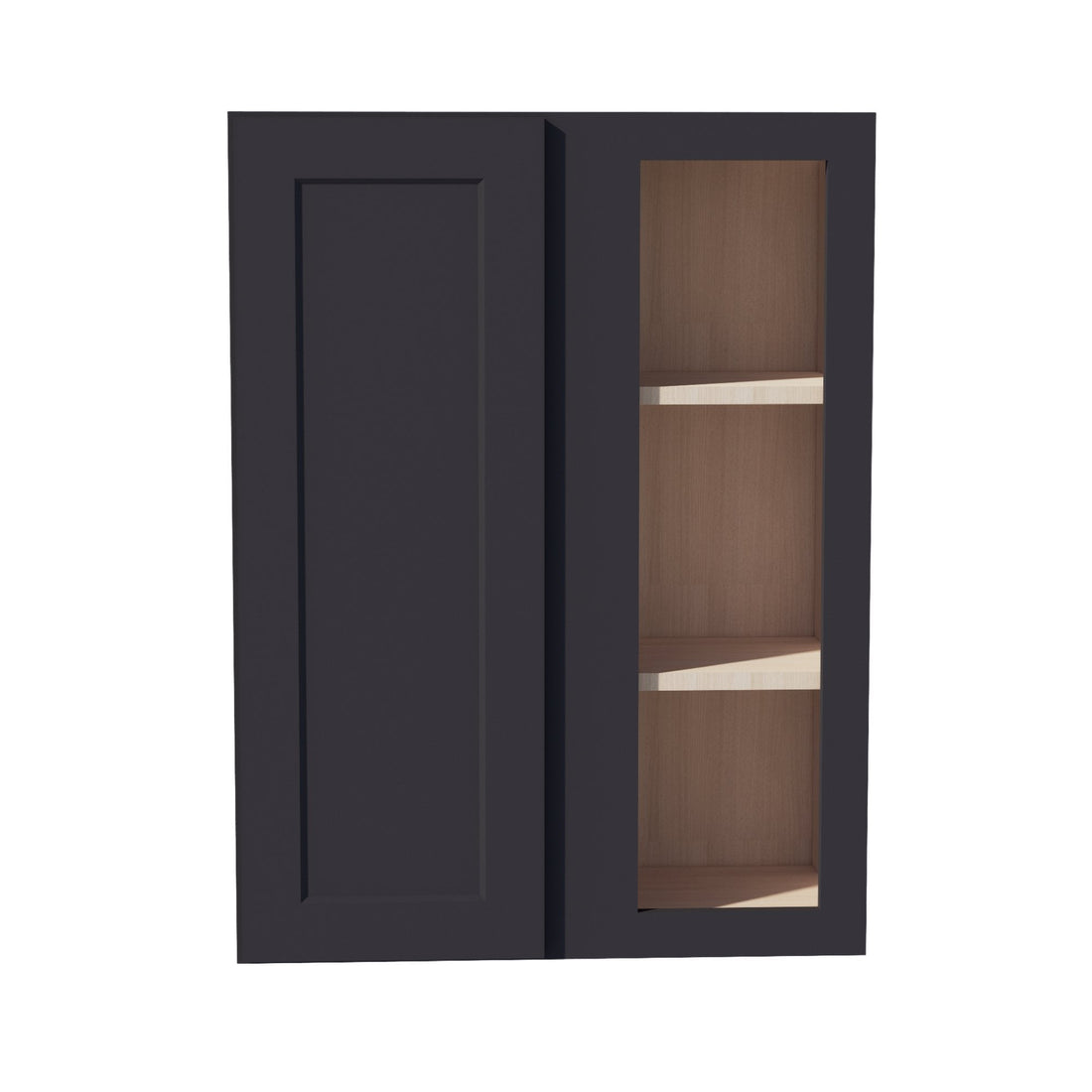 HE-WBC2736: Ebony Black Shaker 27"W x 36"H 1 Door & 2 Shelves Wall Blind Corner Cabinets