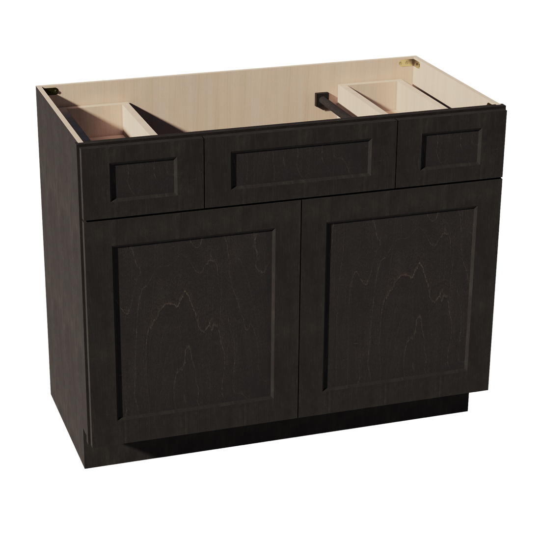 HG-VSD4221: Dark Gray Shaker 42"W x 34-1/2"H x 21"D 2 Doors, 2 Drawers & 1 False Drawer Centered Vanity Sink Base Cabinets