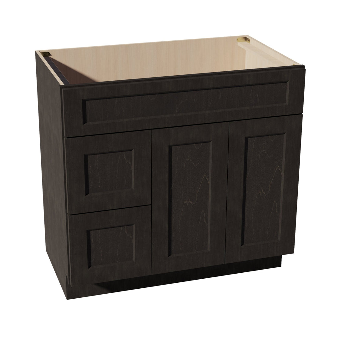 HG-VSD3621R: Dark Gray Shaker 36"W x 34-1/2"H x 21"D 2 Doors & 2 Right Drawers Offset Vanity Sink Base Cabinets