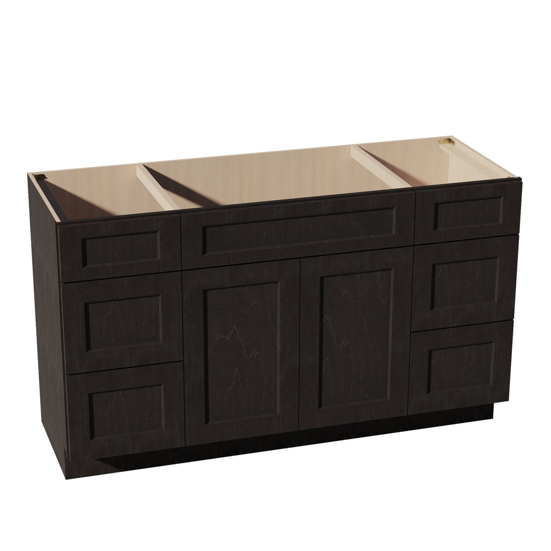 HG-VSD60DOUBLE: Dark Gray Shaker 60"W x 34-1/2"H x 21"D 4 Doors, 3 Drawers & 2 False Drawers Double Sink Vanity Base Combo Cabinets