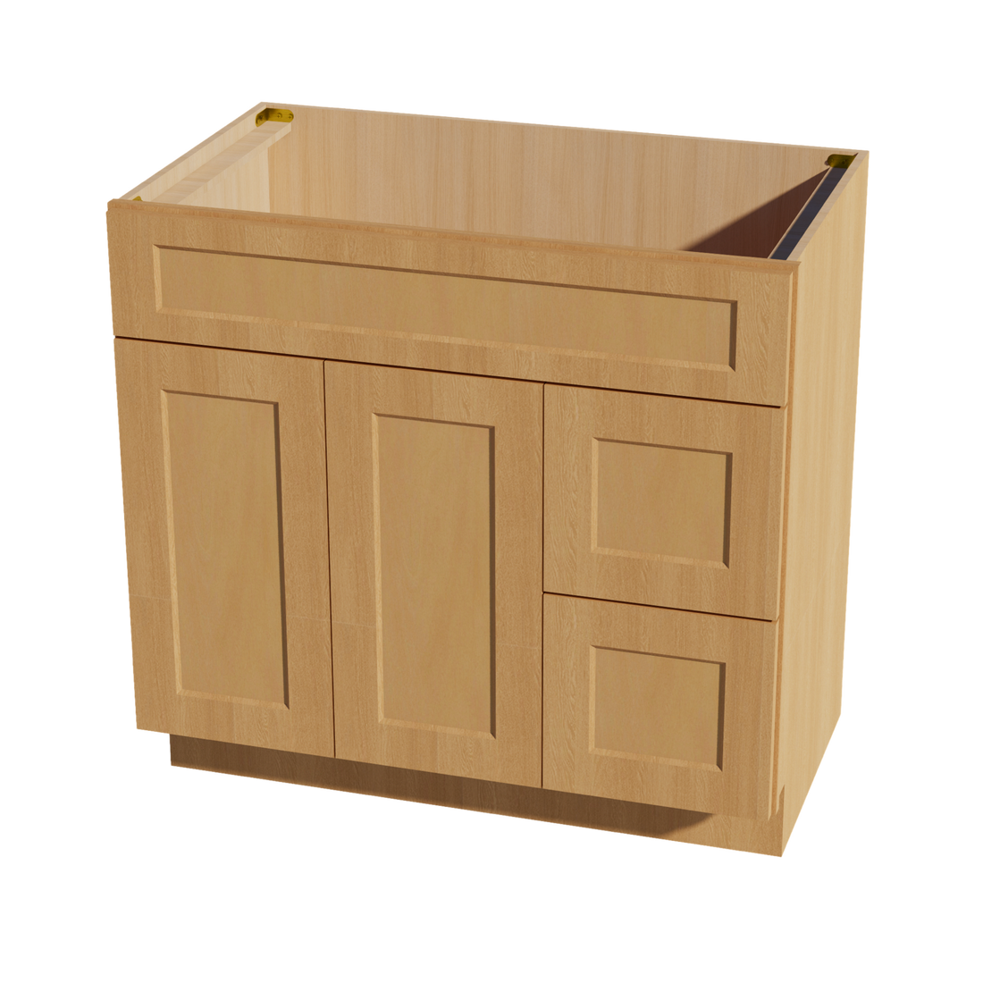 HT-VSD3621R: Timber Wood Shaker 36"W x 34-1/2"H x 21"D 2 Doors & 2 Right Drawers Offset Vanity Sink Base Cabinets