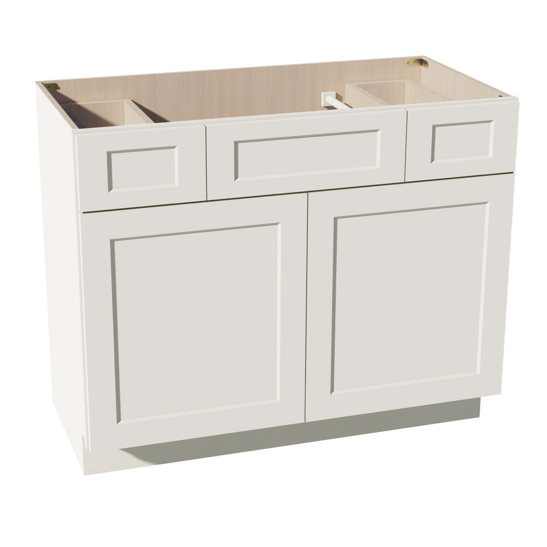 DI-VSD4221: Dallas Ivory Shaker 42"W x 34-1/2"H x 21"D 2 Doors, 2 Drawers & 1 False Drawer Centered Vanity Sink Base Cabinets