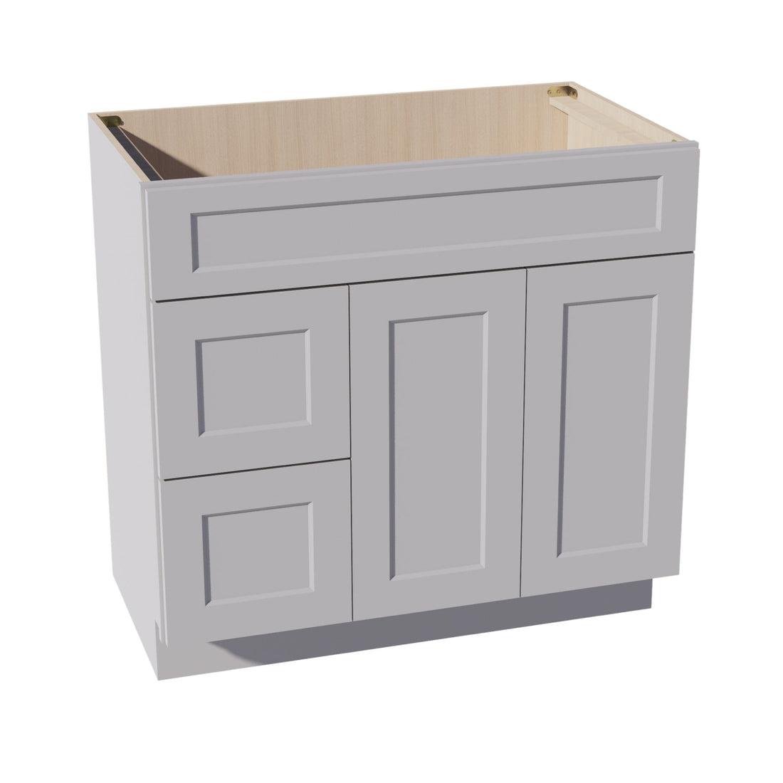 HA-VSD3621L: Ash Gray Shaker 36"W x 34-1/2"H x 21"D 2 Doors & 2 Left Drawers Offset Vanity Sink Base Cabinets