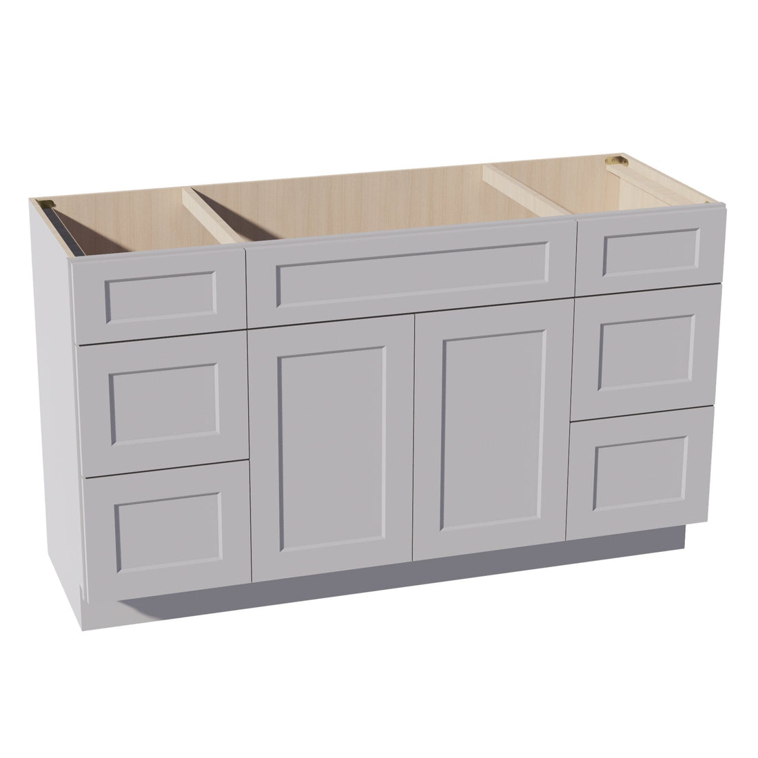HA-VSD60SINGLE: Ash Gray Shaker 60"W x 34-1/2"H x 21"D 2 Doors, 6 Drawers & 1 False Drawer Single Sink Vanity Base Combo Cabinets