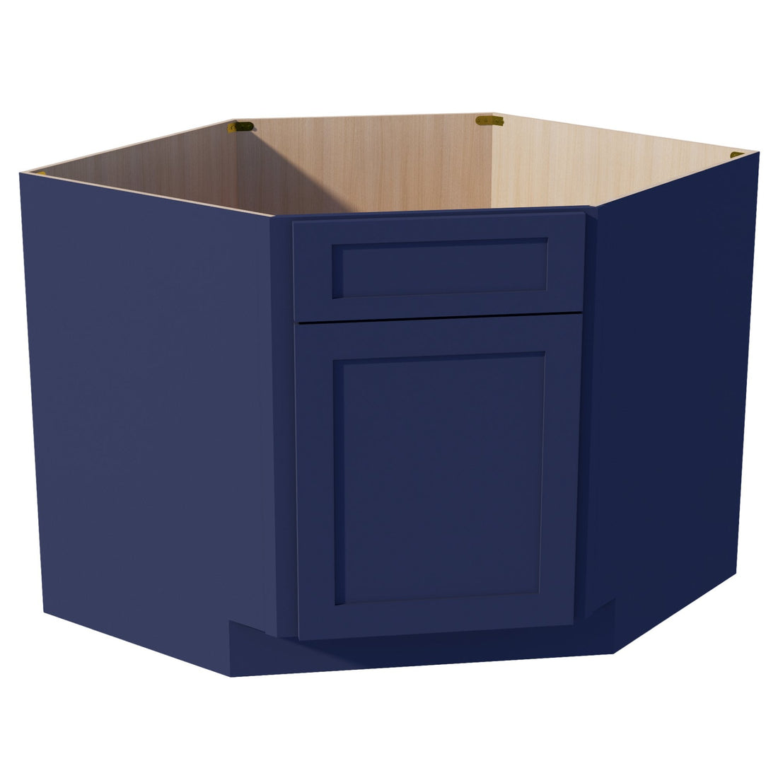 HB-DSB42: Indigo Blue Shaker 42" 1 Door & 1 False Drawer Corner Sink Base Cabinet