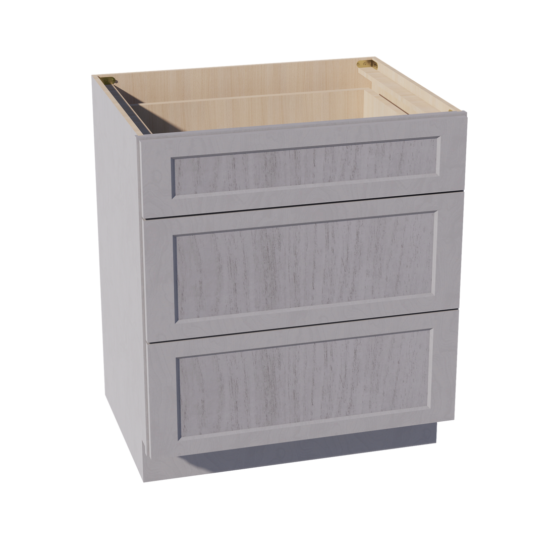 HLG-DB30: Light Gray Shaker 30" 3 Drawers Base Cabinet