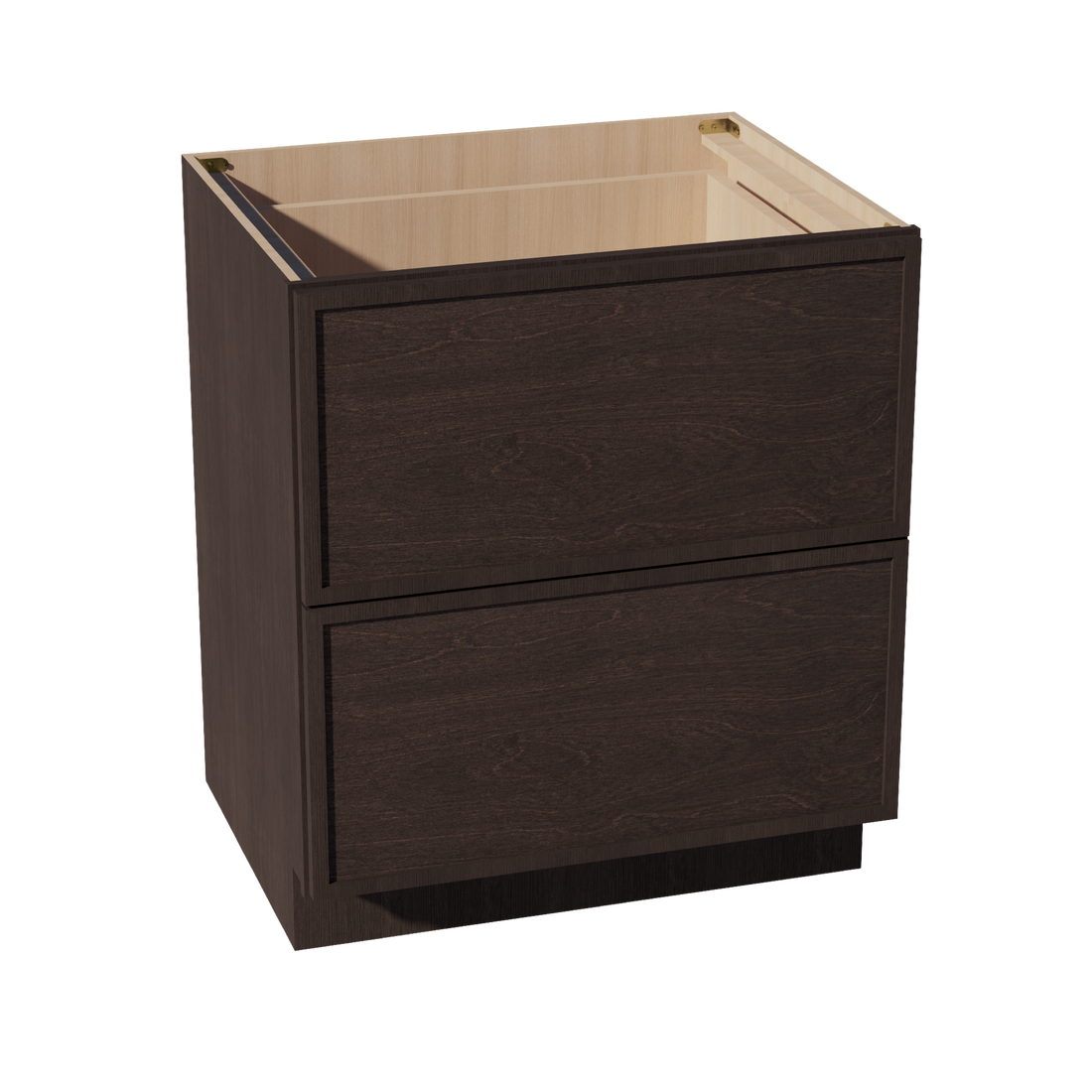SM-DB30-2: Mocha Brown Slim Shaker 30" 2 Drawers Base Cabinet