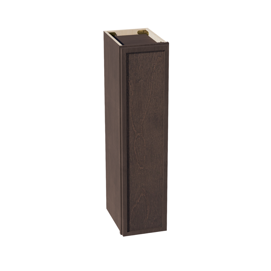 SM-W0936: Mocha Brown Slim Shaker 09"W x 36"H 1 Door & 2 Shelves Standard Wall Cabinet