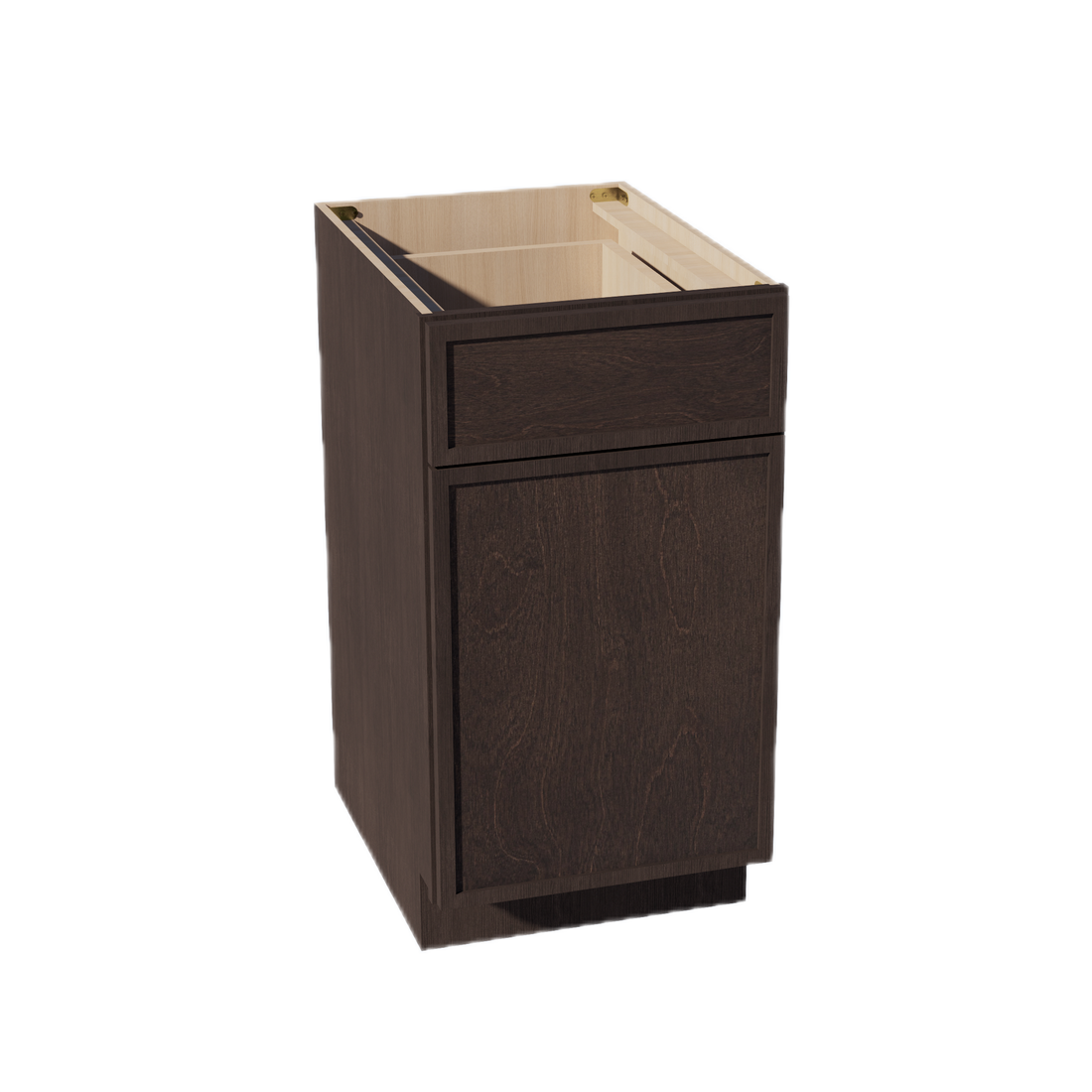 SM-B18TR: Mocha Brown Slim Shaker 18" 1 Drawer Trash Pull Out Base Cabinet