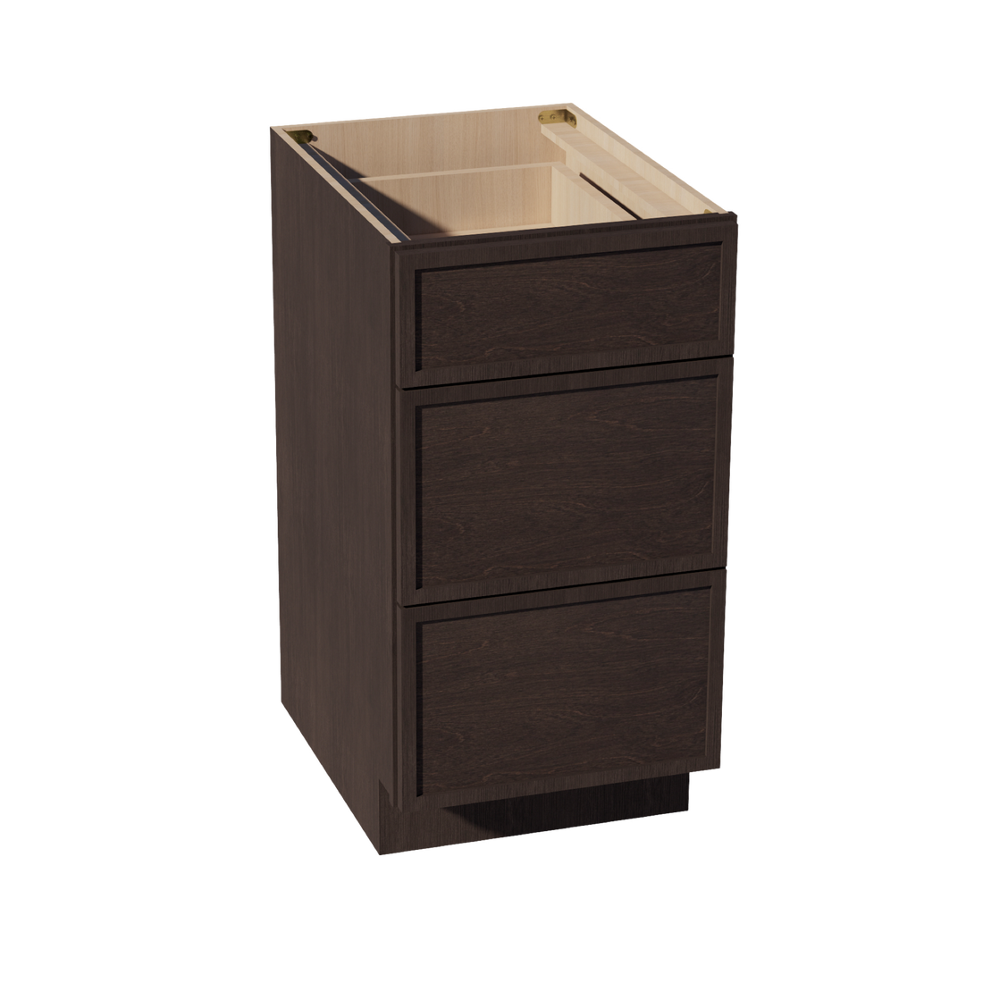 SM-DB18: Mocha Brown Slim Shaker 18" 3 Drawers Base Cabinet