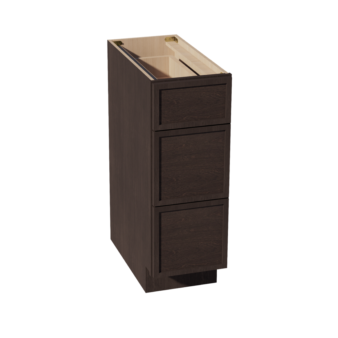 SM-DB12: Mocha Brown Slim Shaker 12" 3 Drawers Base Cabinet