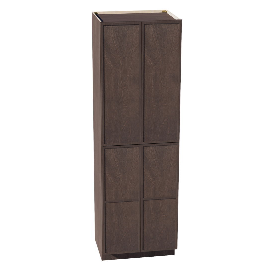 SM-TP2496: Mocha Brown Slim Shaker 24"W x 96"H x 24"D 4 Door & 6 Shelves Tall Shelf Pantry Cabinets