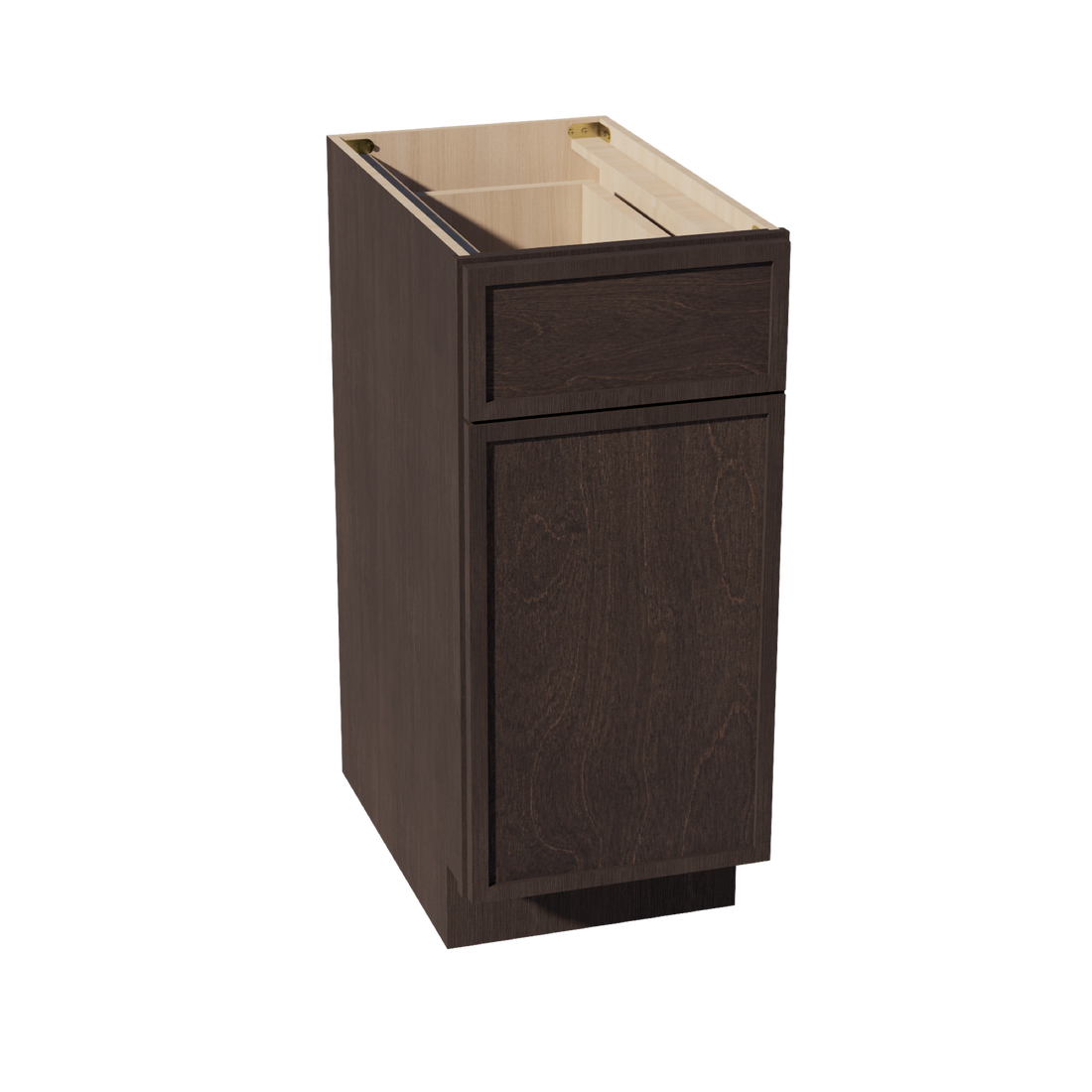 SM-B15: Mocha Brown Slim Shaker 15" 1 Drawer 1 Door Standard Base Cabinet