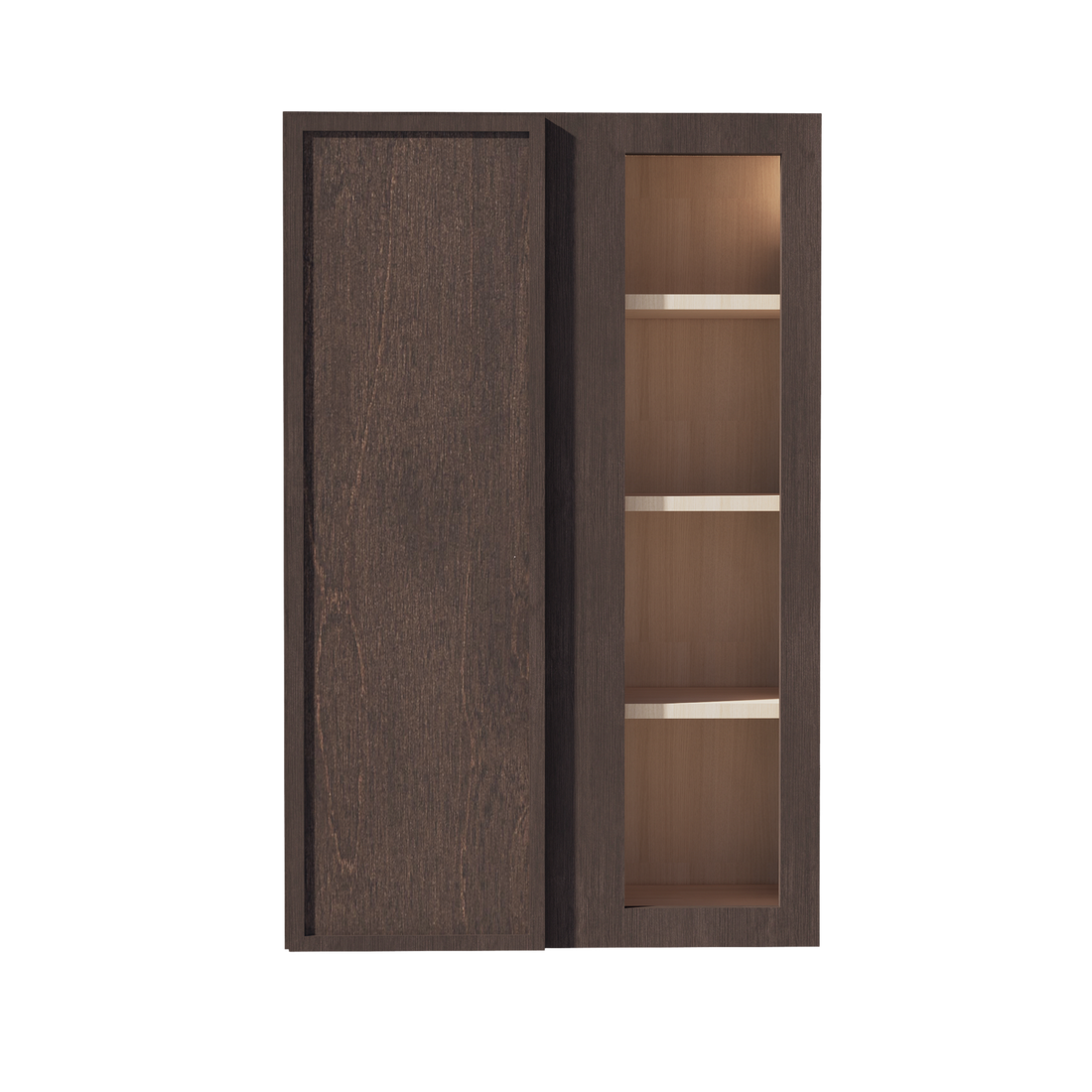 SM-WBC2742: Mocha Brown Slim Shaker 27"W x 42"H 1 Door & 2 Shelves Wall Blind Corner Cabinets