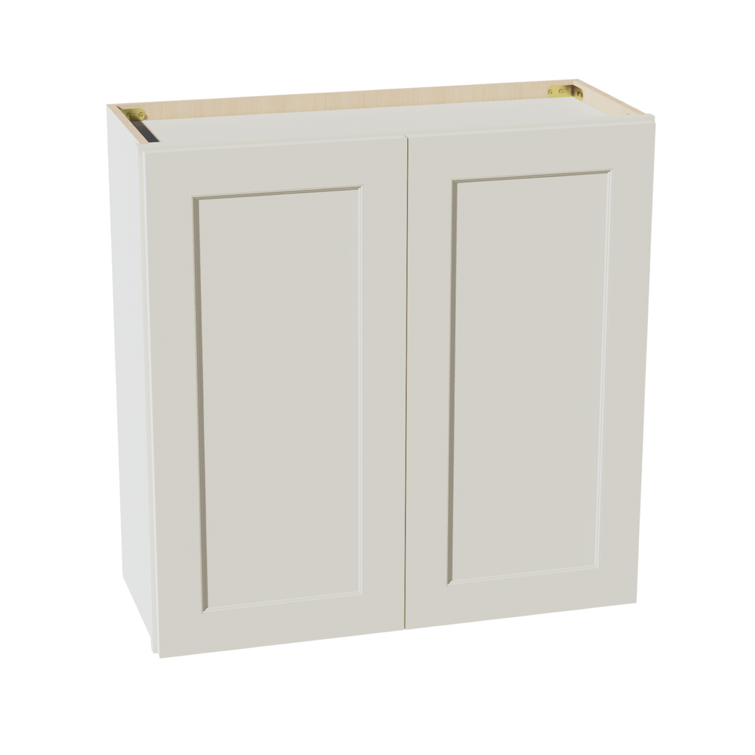 TW-W3030: Creamy White Shaker 30"W x 30"H 2 Doors & 2 Shelves Standard Wall Cabinet