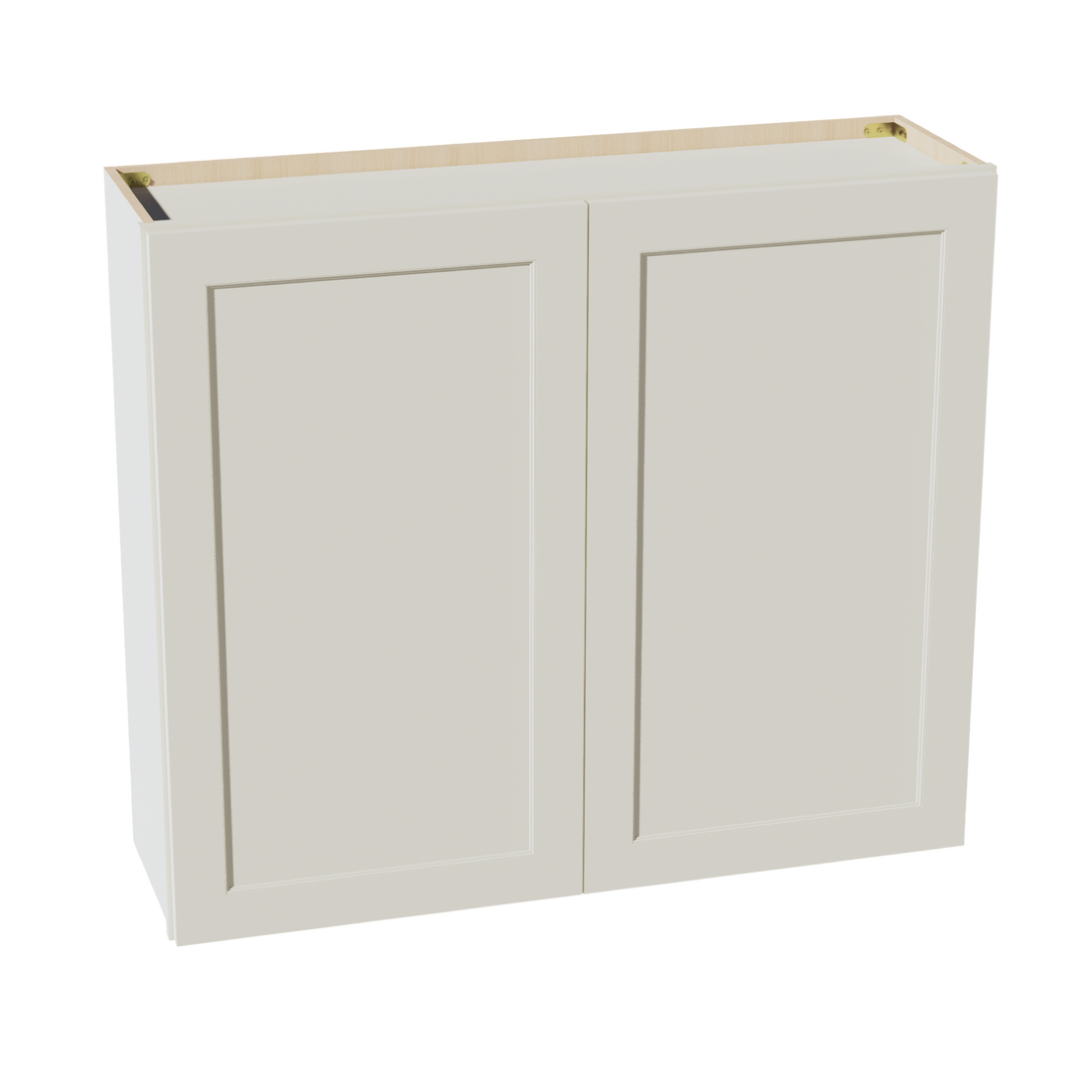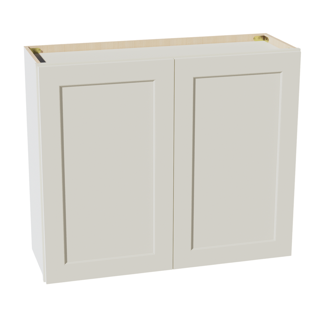 TW-W3630: Creamy White Shaker 36"W x 30"H 2 Doors & 2 Shelves Standard Wall Cabinet