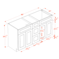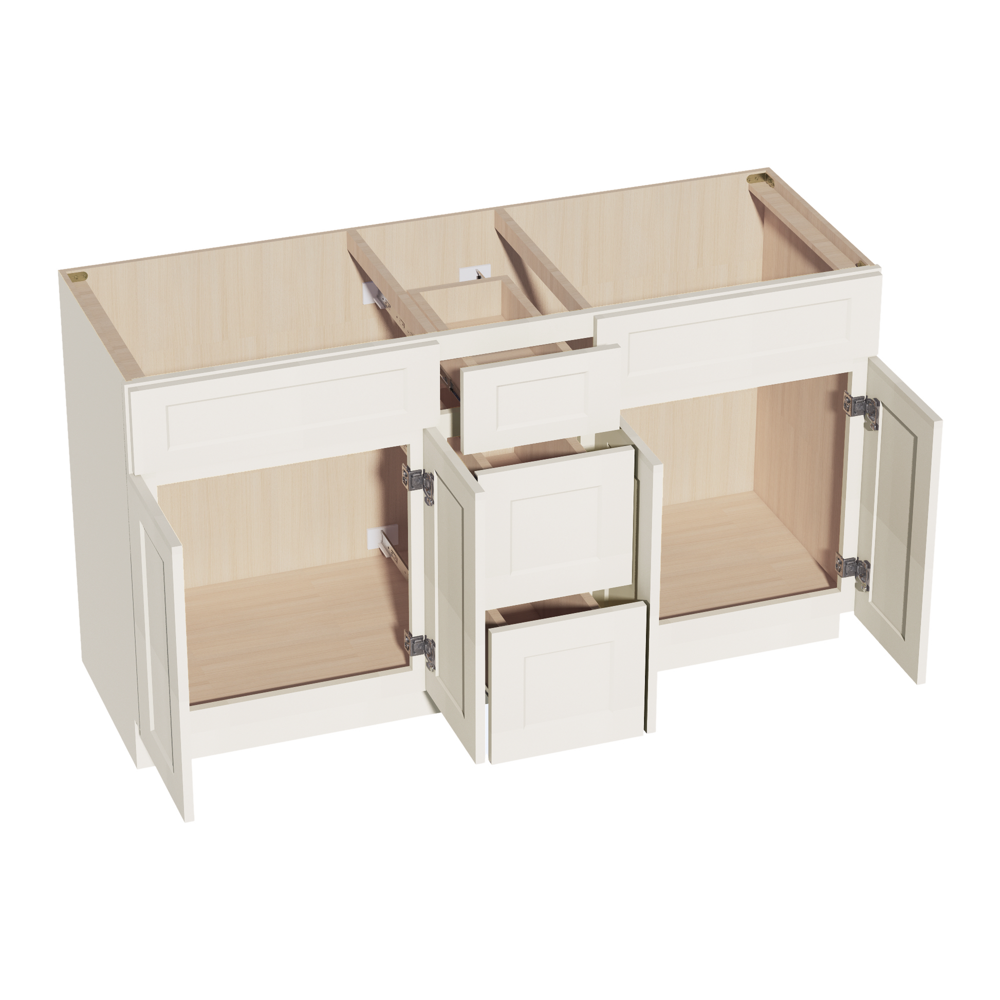 DI-VSD60DOUBLE: Dallas Ivory Shaker 60"W x 34-1/2"H x 21"D 4 Doors, 3 Drawers & 2 False Drawers Double Sink Vanity Base Combo Cabinets
