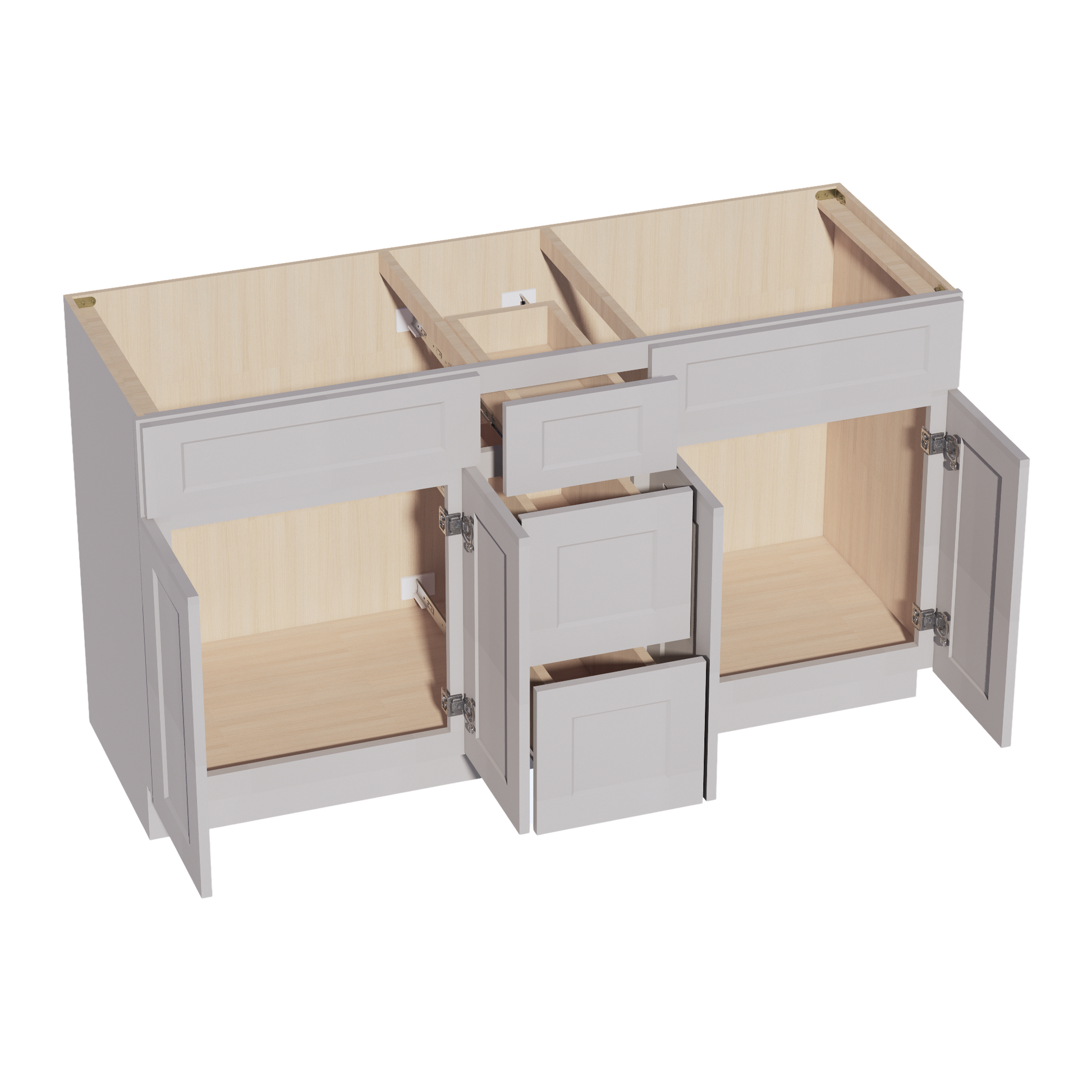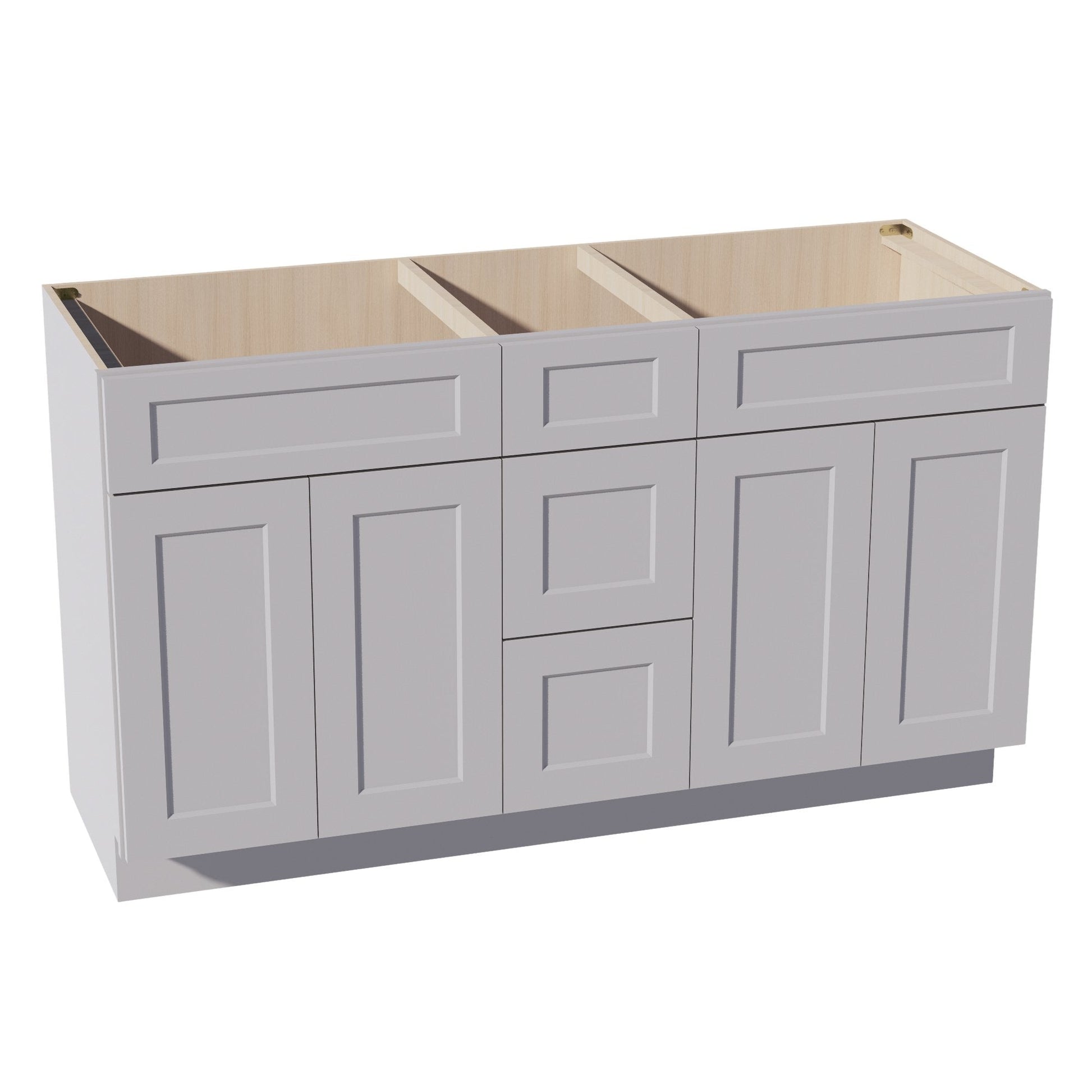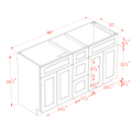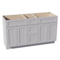 HA-VSD60DOUBLE: Ash Gray Shaker 60"W x 34-1/2"H x 21"D 4 Doors, 3 Drawers & 2 False Drawers Double Sink Vanity Base Combo Cabinets