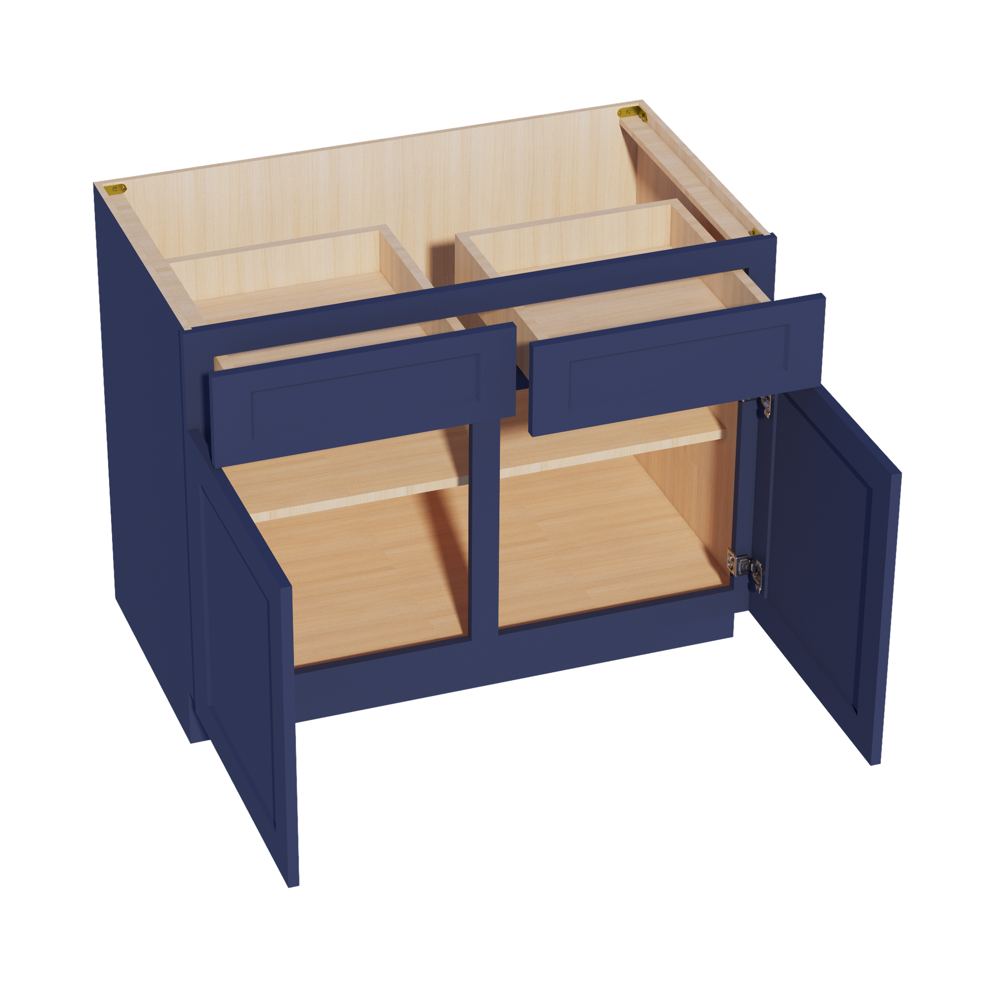 HB-B42: Indigo Blue Shaker 42" 2 Drawers 2 Doors Standard Base Cabinet