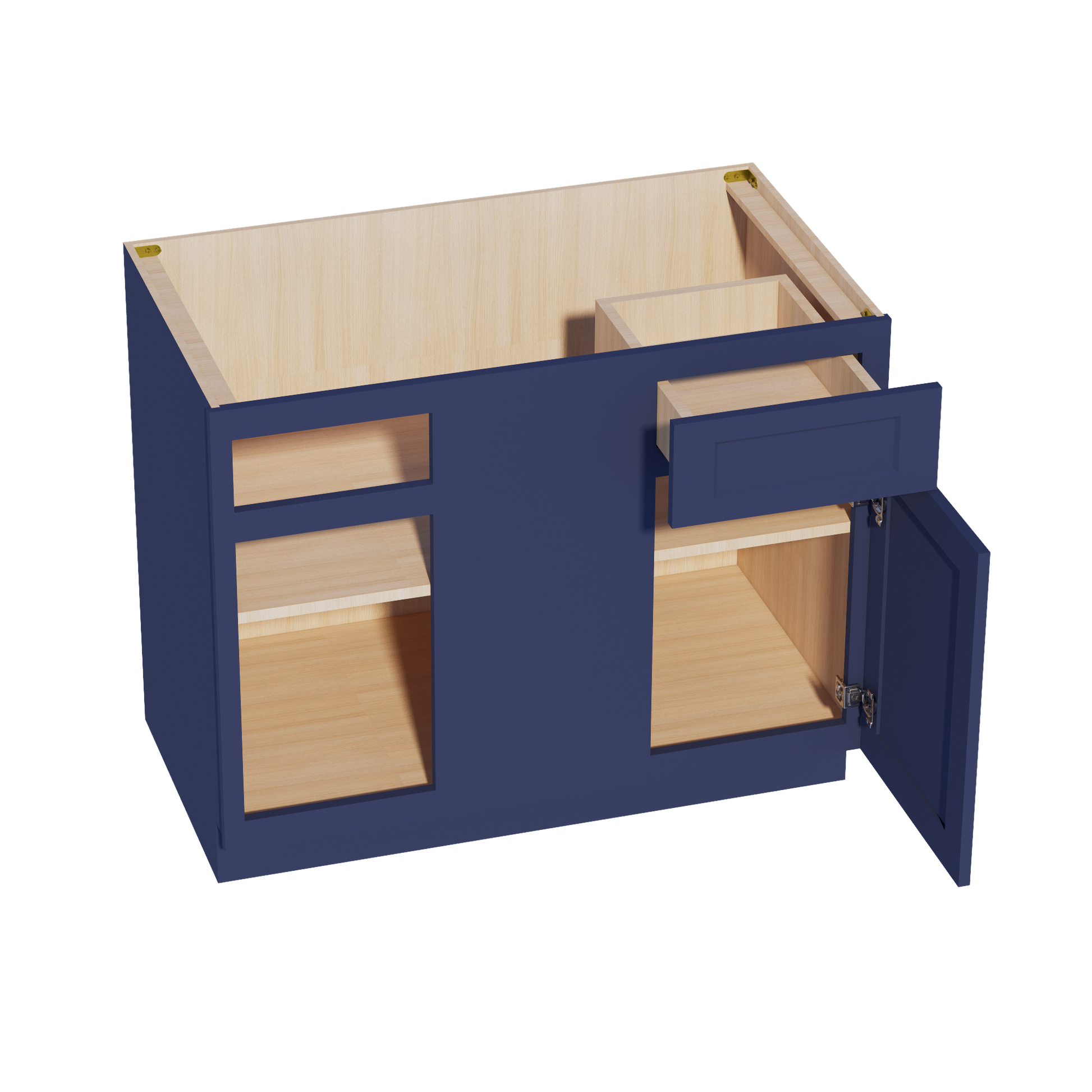 HB-BBC42/45: Indigo Blue Shaker 42" 1 Door & 1 Drawer Blind Corner Base Cabinets