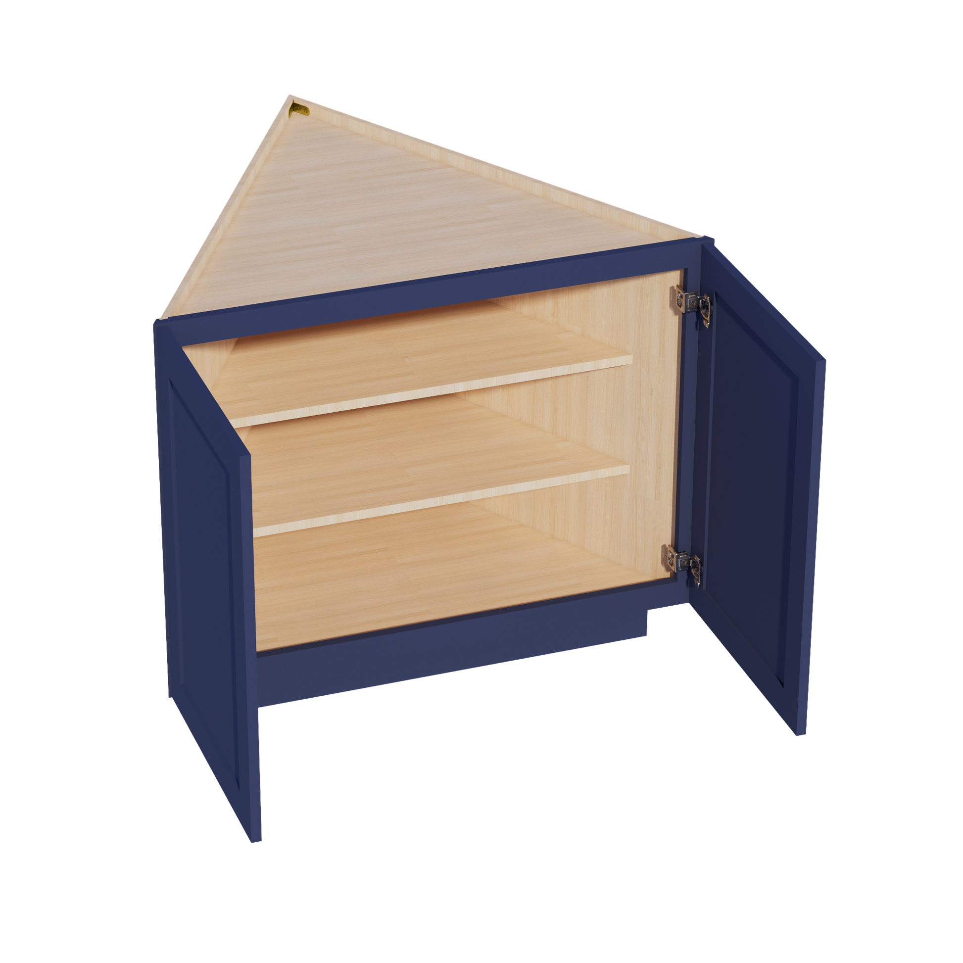HB-BEC24: Indigo Blue Shaker 24" 2 Full Height Door Angled End Base Cabinets