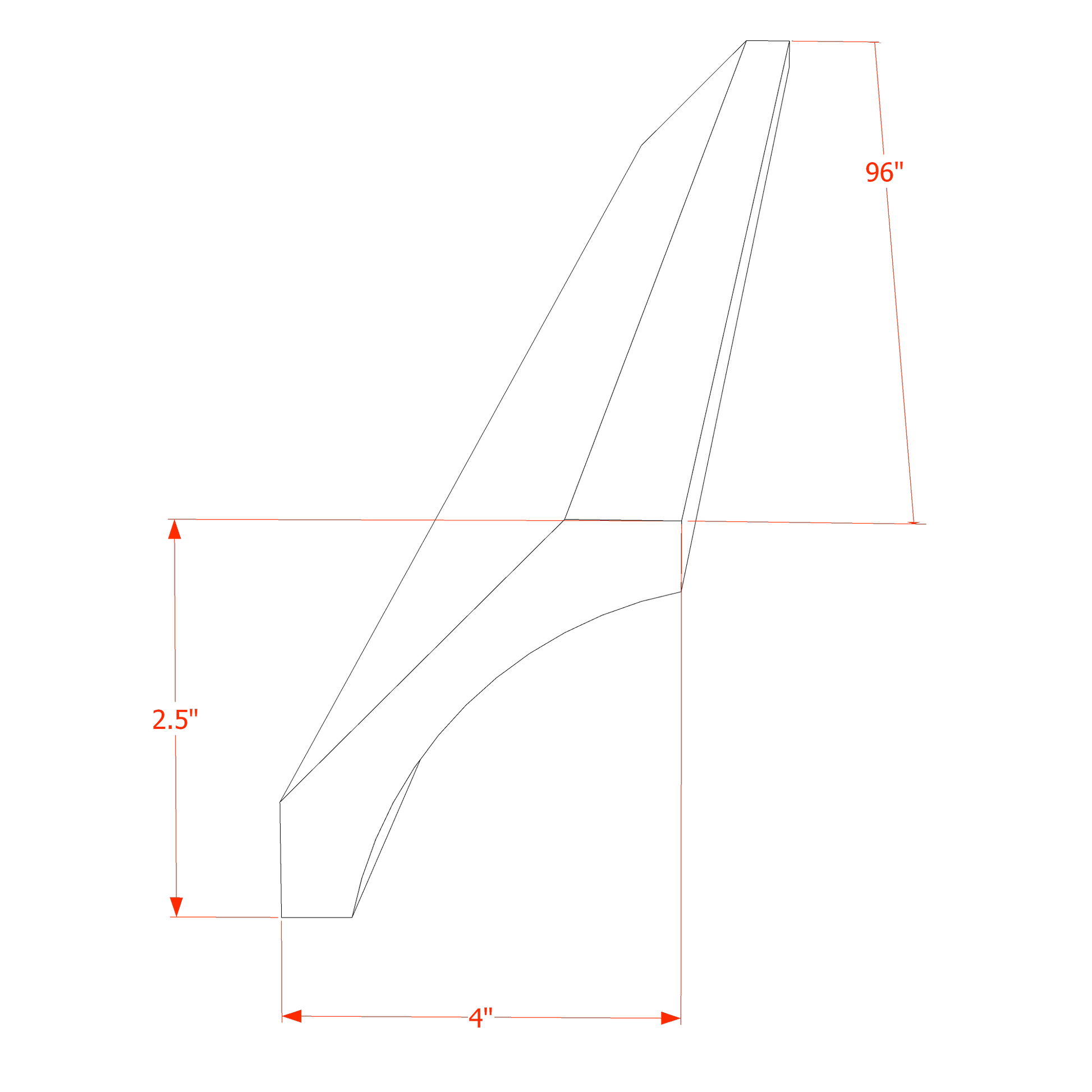 Dimensions: 96"W x 2-1/2"H x 2-1/2"D