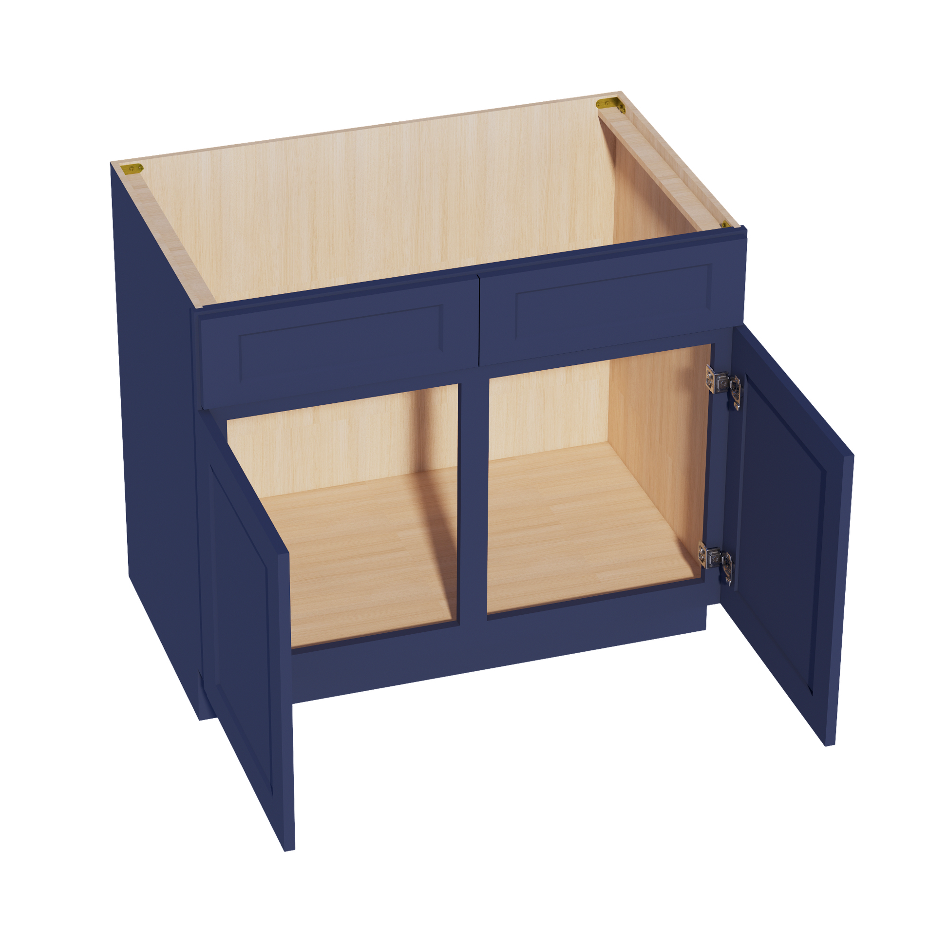 HB-SB39: Indigo Blue Shaker 39" 2 Doors 2 False Drawers Sink Base Cabinet
