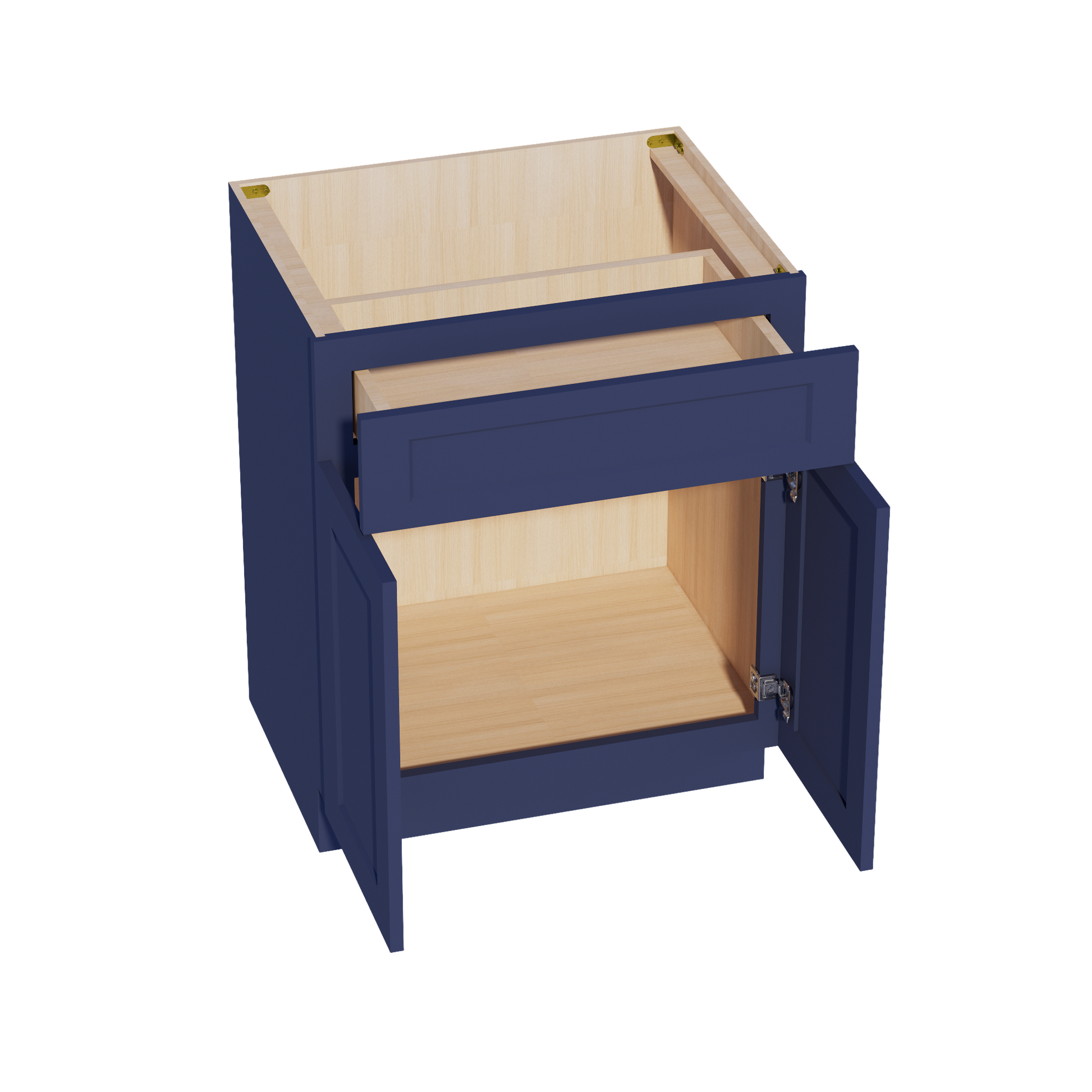 HB-VB2721: Indigo Blue Shaker 27"W x 34-1/2"H x 21"D 2 Doors & 1 Drawer Double Door Vanity Base Cabinets