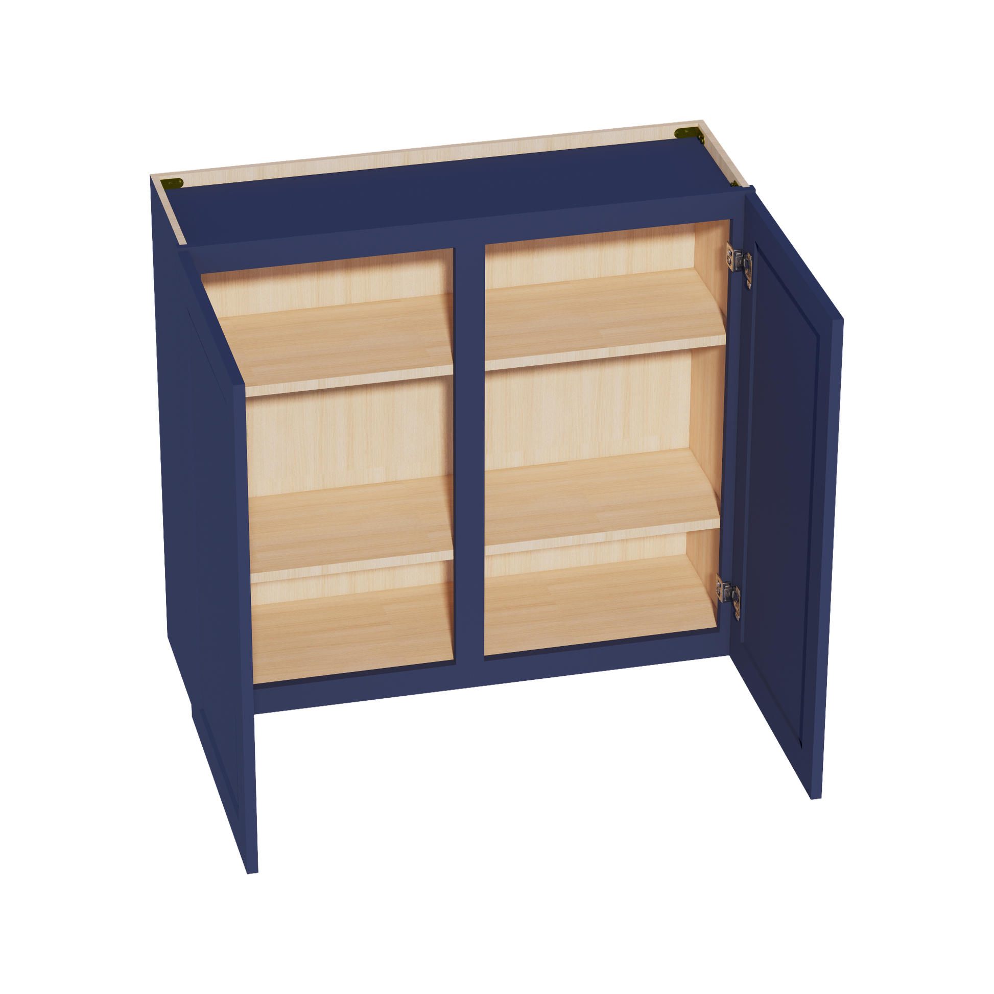 HB-W3936: Indigo Blue Shaker 39"W x 36"H 2 Doors & 2 Shelves Standard Wall Cabinet