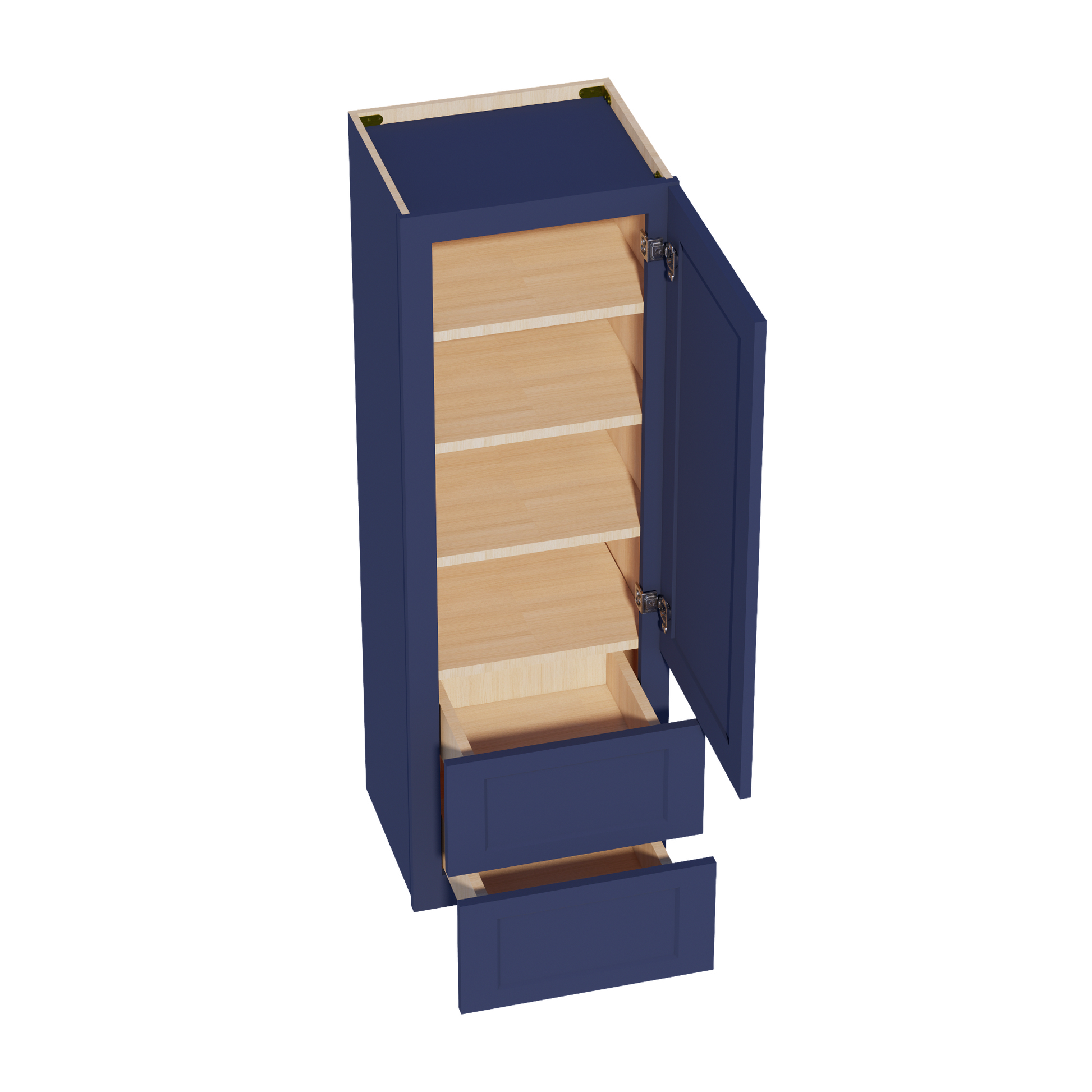 HB-WD1854: Indigo Blue Shaker 18"W x 54"H 1 Door & 2 Drawers Special Wall Cabinet