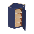 HB-WDC2442: Indigo Blue Shaker 24"W x 42"H 1 Door & 2 Shelves Diagonal Wall Corner Cabinet