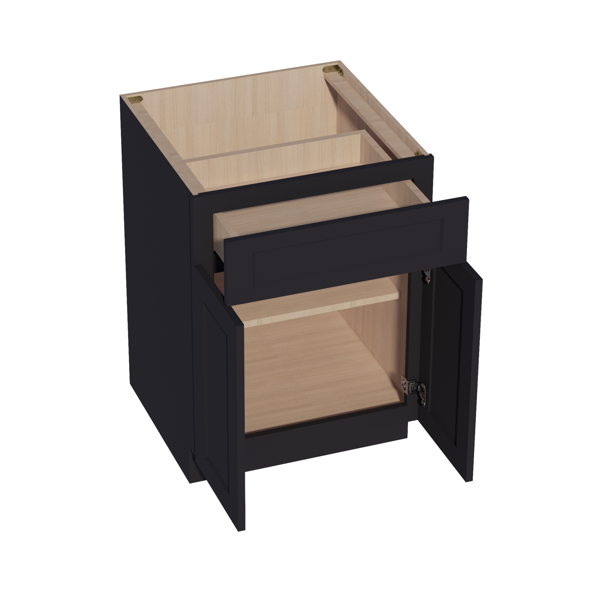 HE-B24: Ebony Black Shaker 24" 1 Drawer 2 Doors Standard Base Cabinet