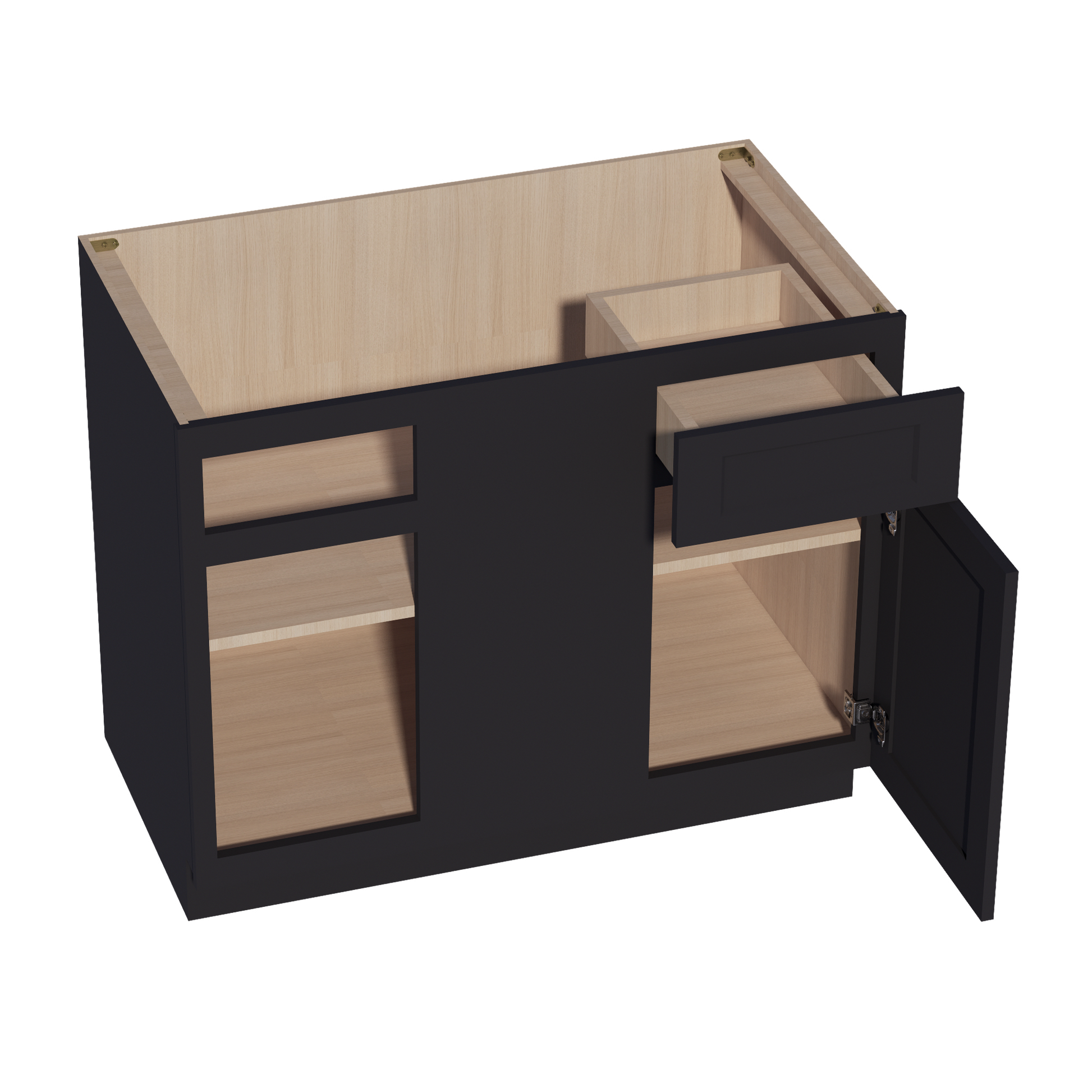 HE-BBC42/45: Ebony Black Shaker 42" 1 Door - 1 Drawer Blind Corner Base Cabinets