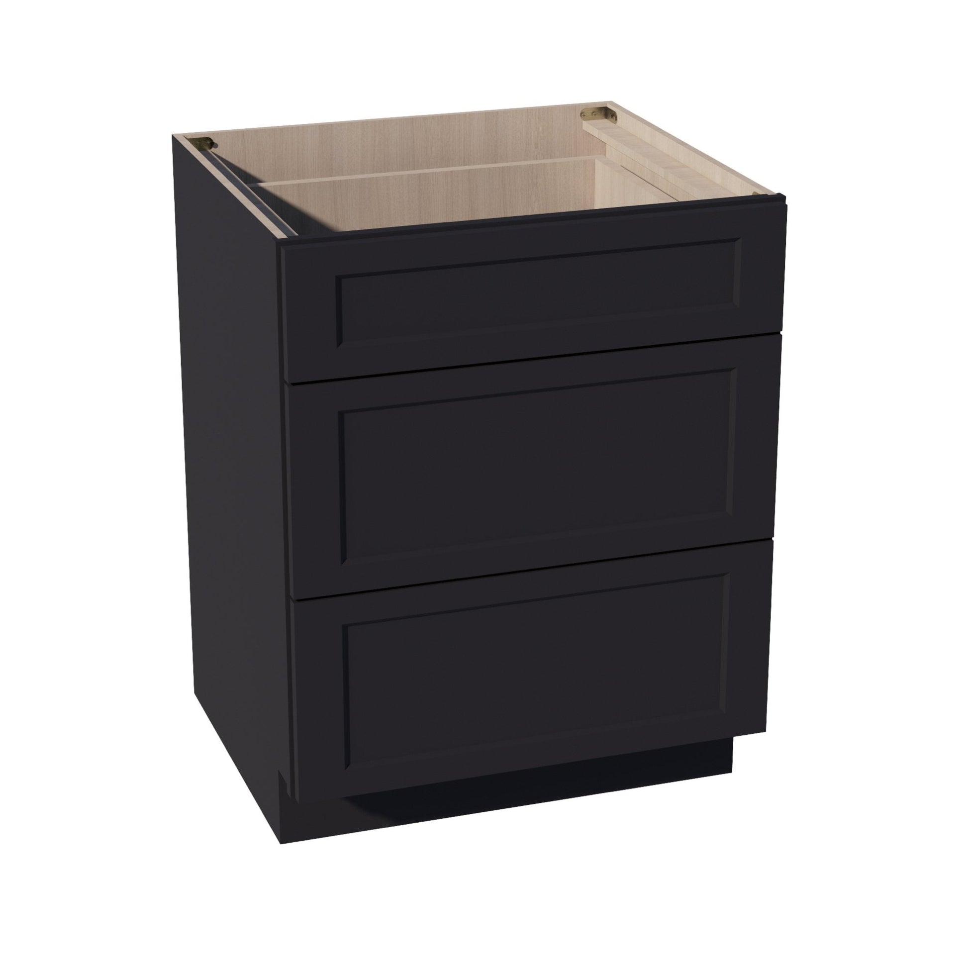 HE-DB27: Ebony Black Shaker 27" 3 Drawers Base Cabinet