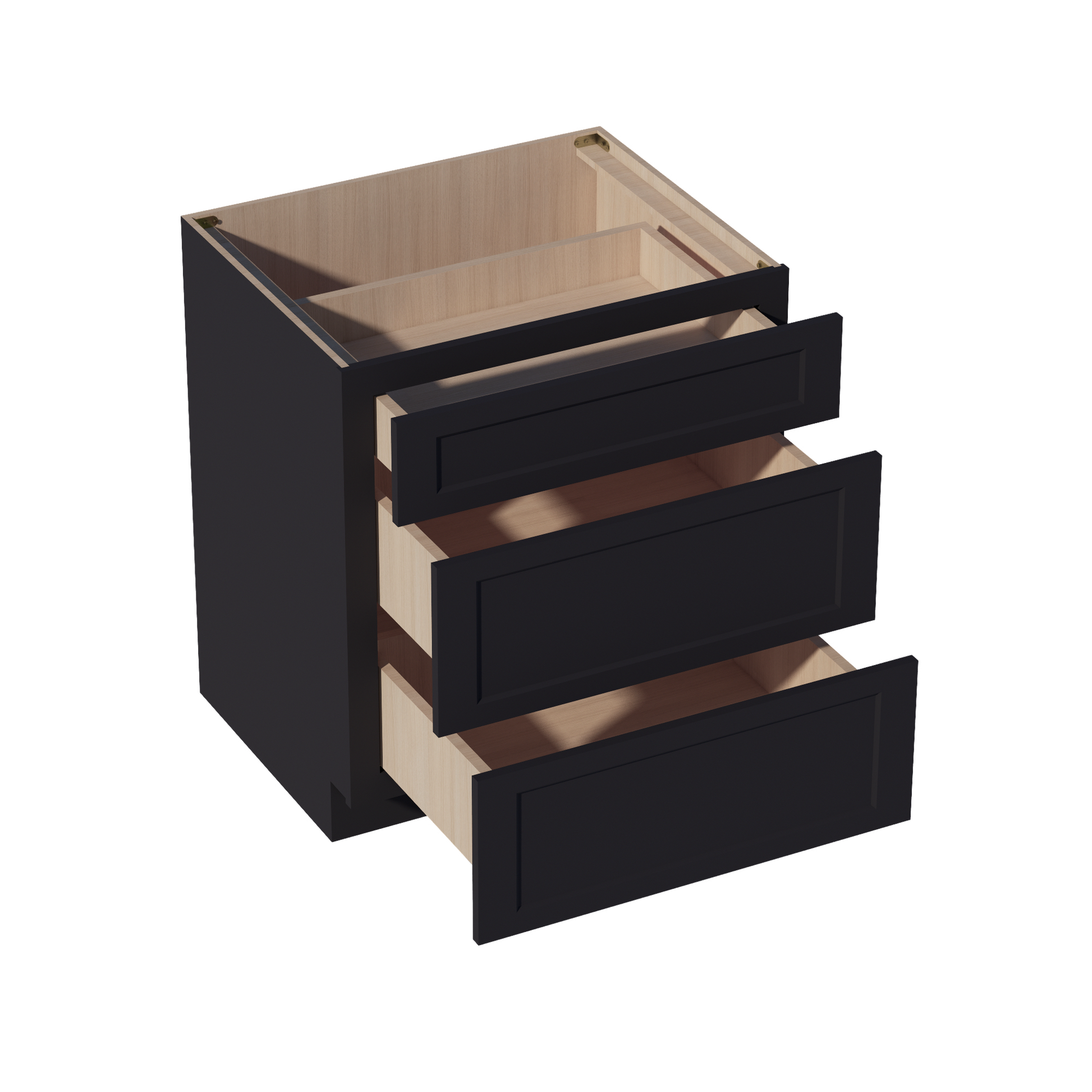 HE-DB30: Ebony Black Shaker 30" 3 Drawers Base Cabinet