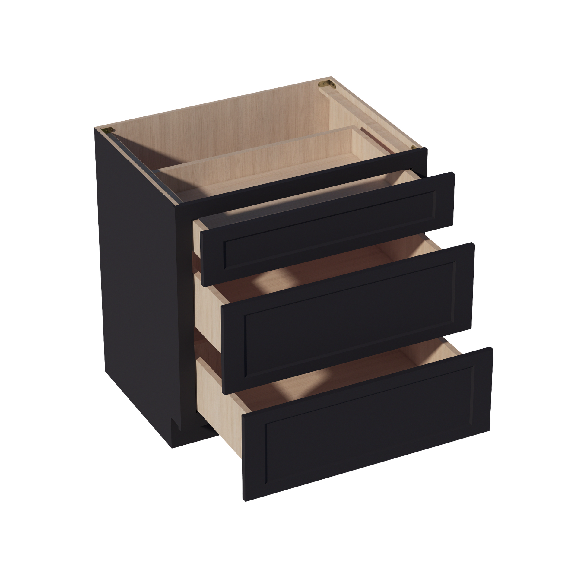 HE-DB33: Ebony Black Shaker 33" 3 Drawers Base Cabinet