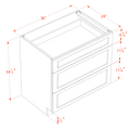 HE-DB36: Ebony Black Shaker 36" 3 Drawers Base Cabinet