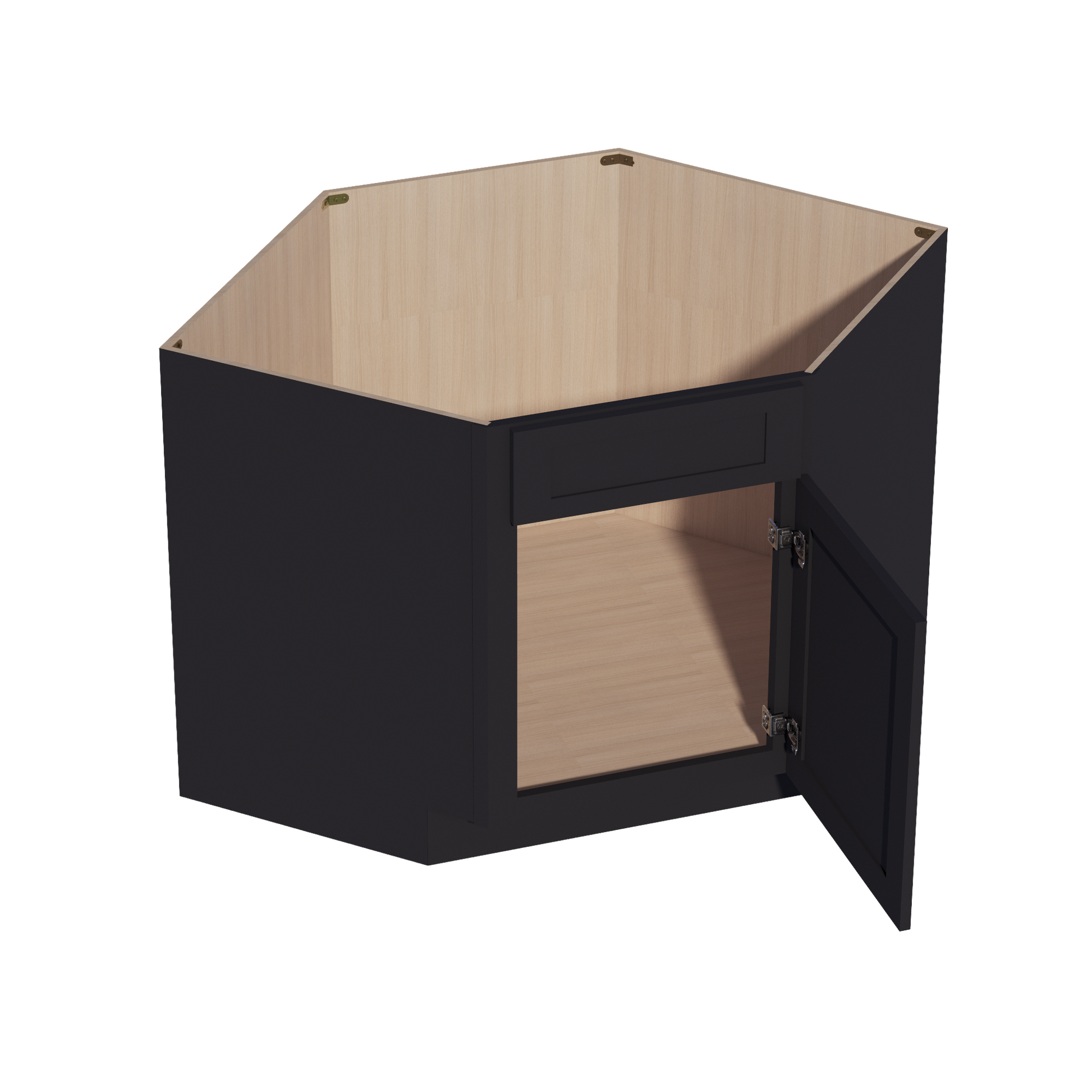 HE-DSB42: Ebony Black Shaker 42" 1 Door - 1 False Drawer Corner Sink Base Cabinets