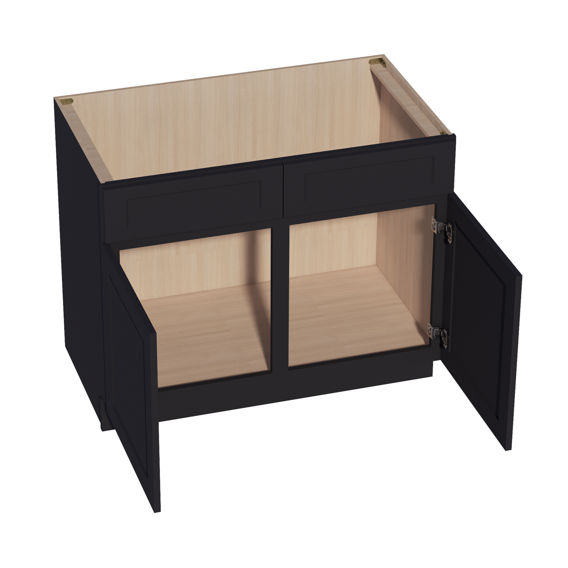 HE-SB42: Ebony Black Shaker 42" 2 Doors 2 False Drawers Sink Base Cabinet