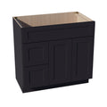 HE-VSD3621L: Ebony Black Shaker 36"W x 34-1/2"H x 21"D 2 Doors & 2 Left Drawers Offset Vanity Sink Base Cabinets