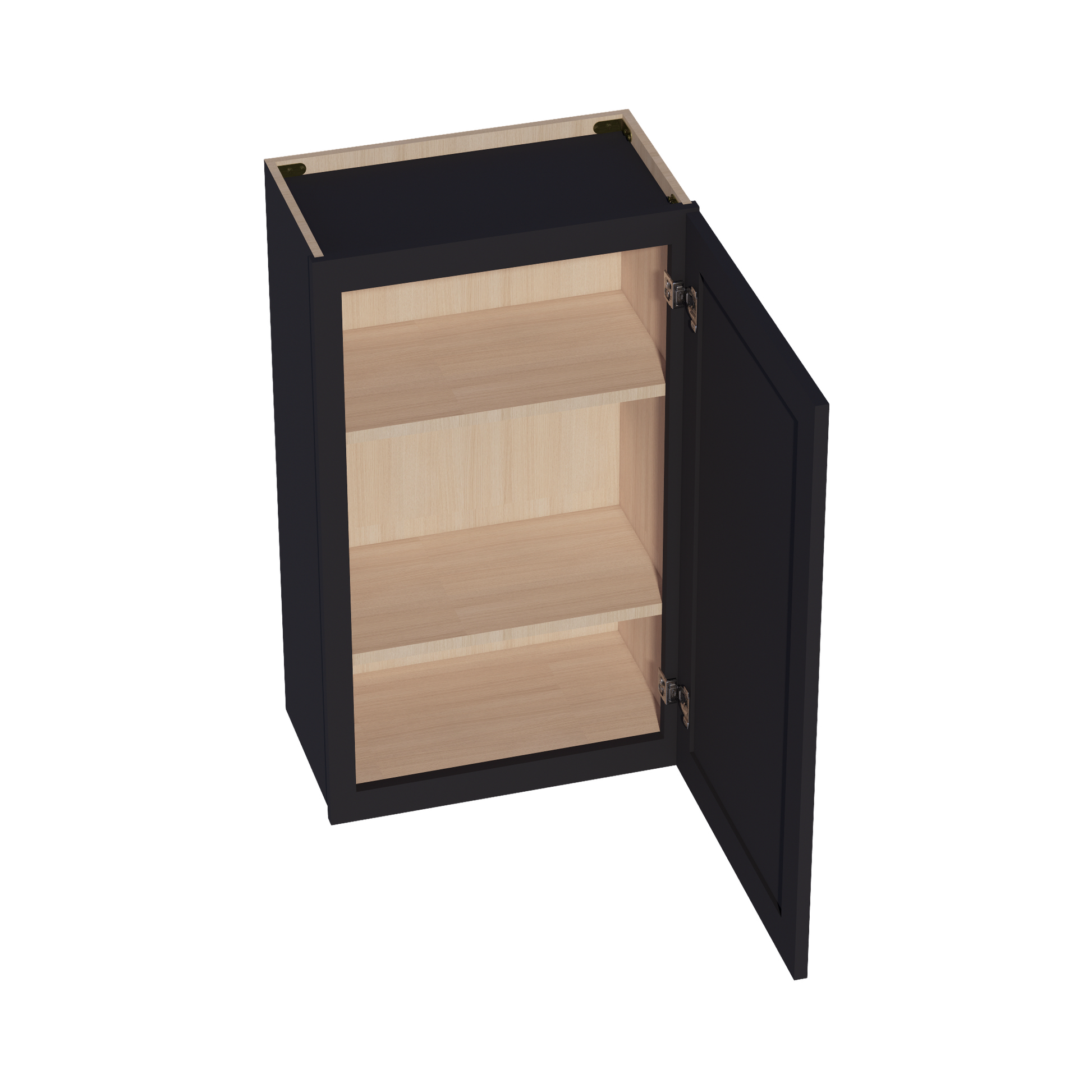 HE-W2136: Ebony Black Shaker 21"W x 36"H 1 Door & 2 Shelves Standard Wall Cabinet