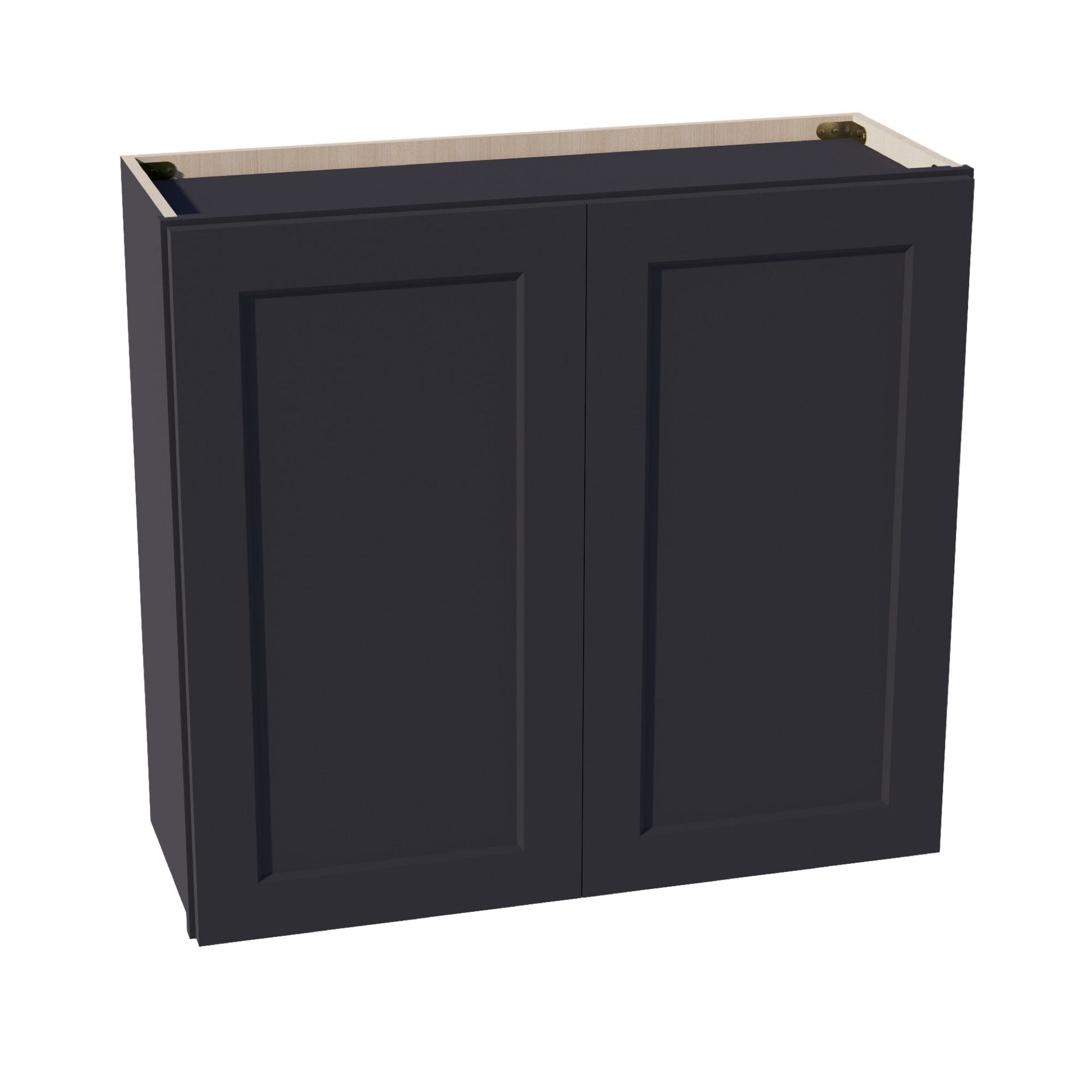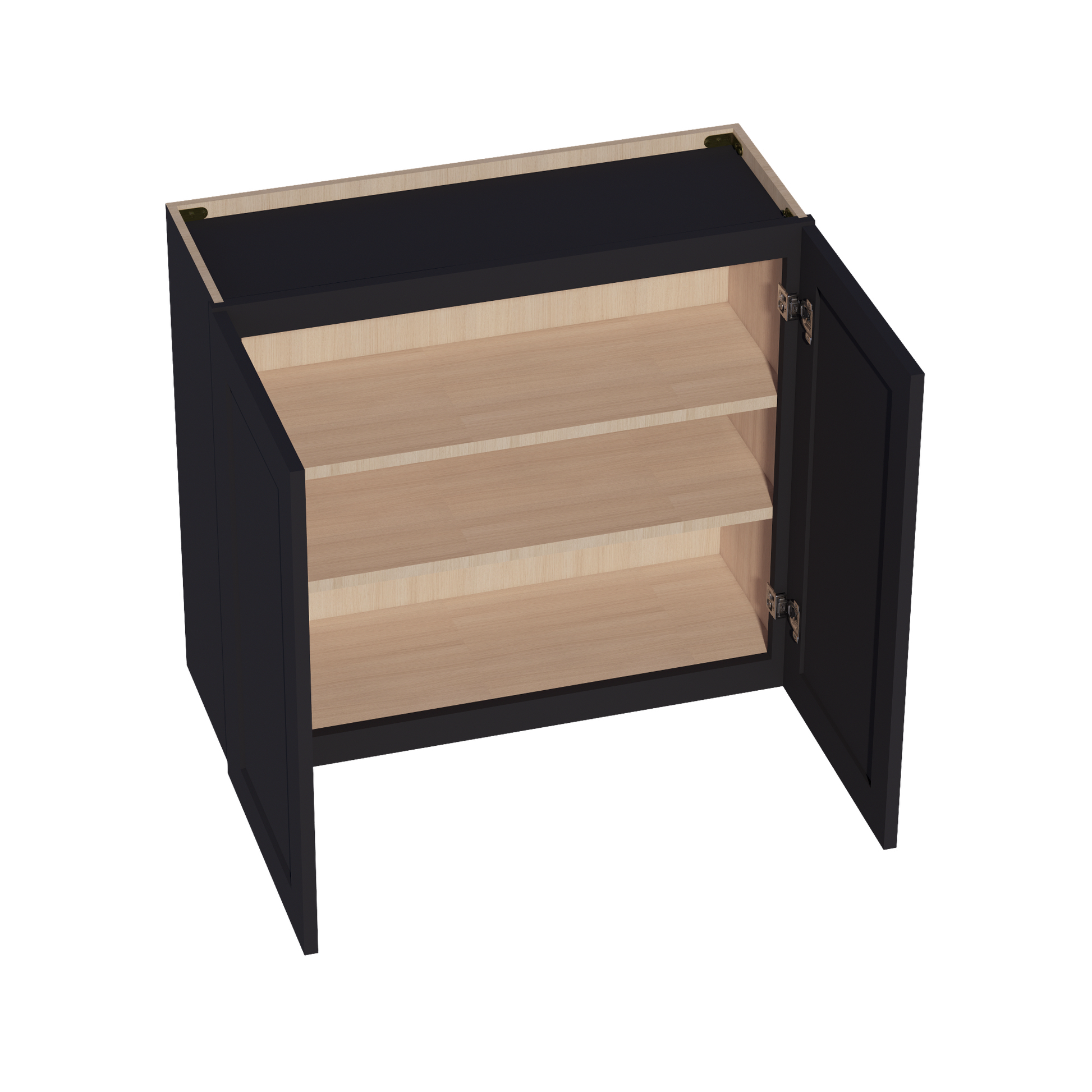 HE-W3330: Ebony Black Shaker 33"W x 30"H 2 Doors & 2 Shelves Standard Wall Cabinet