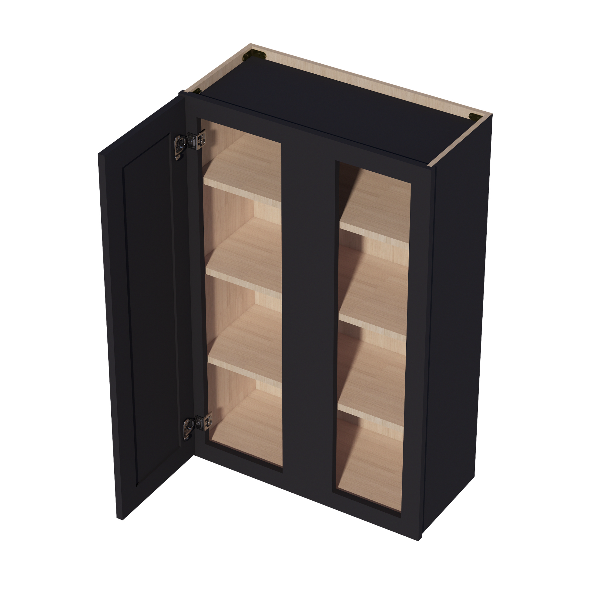 HE-WBC2742: Ebony Black Shaker 27"W x 42"H 1 Door & 2 Shelves Wall Blind Corner Cabinets