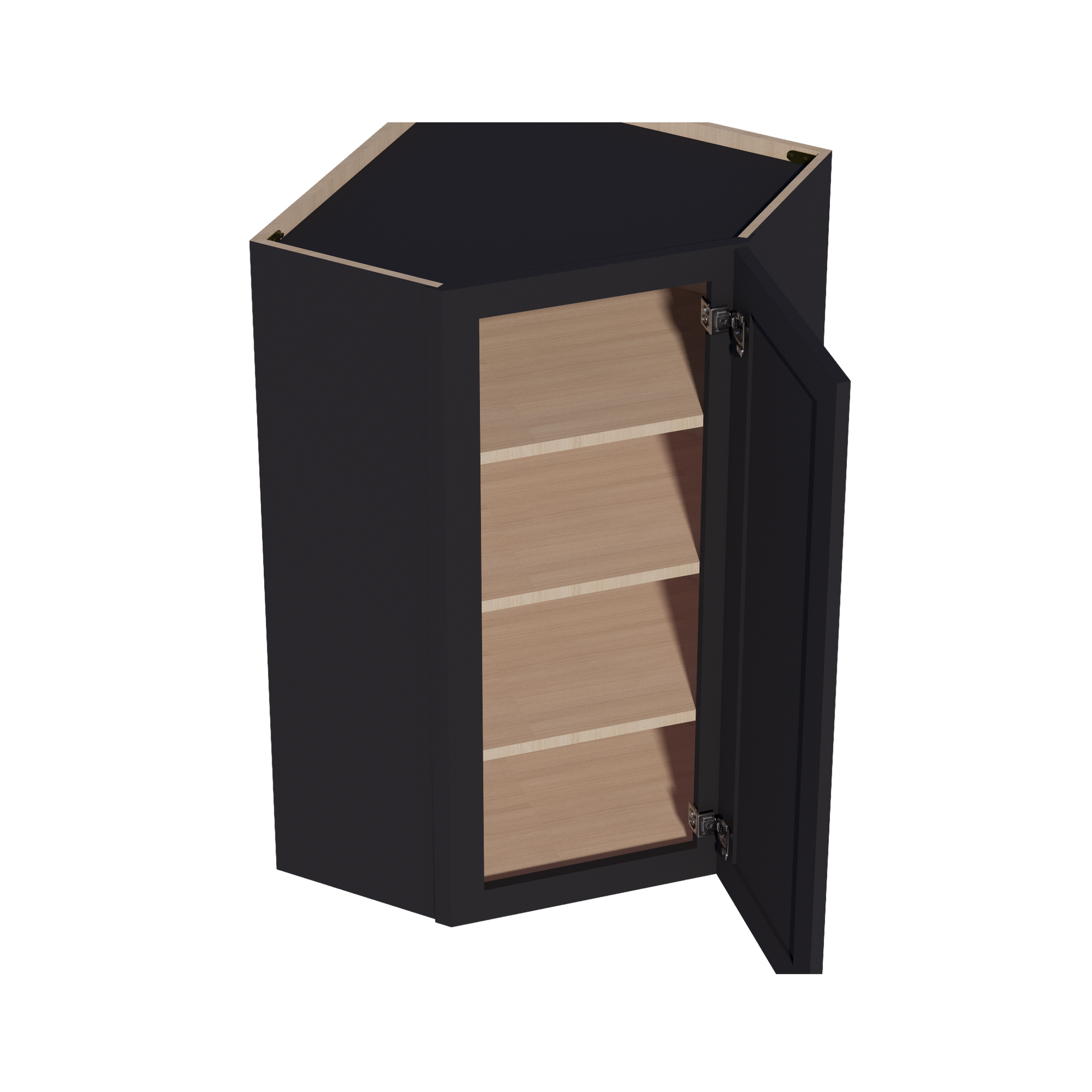 HE-WDC2442: Ebony Black Shaker 24"W x 42"H 1 Door & 2 Shelves Diagonal Wall Corner Cabinet