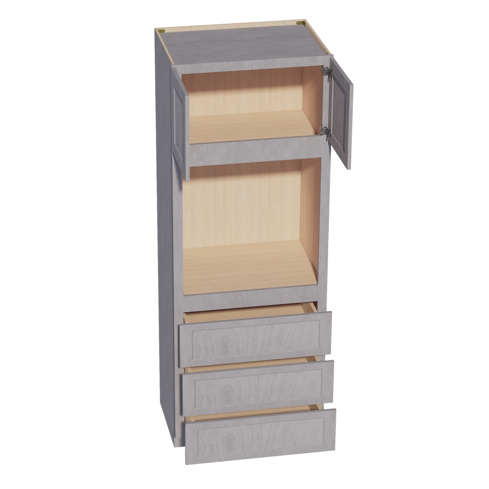 HLG-OC3390: Light Gray Shaker 33"W x 90"H x 24"D 2 Doors & 3 Drawers Tall Oven Shelf Cabinets
