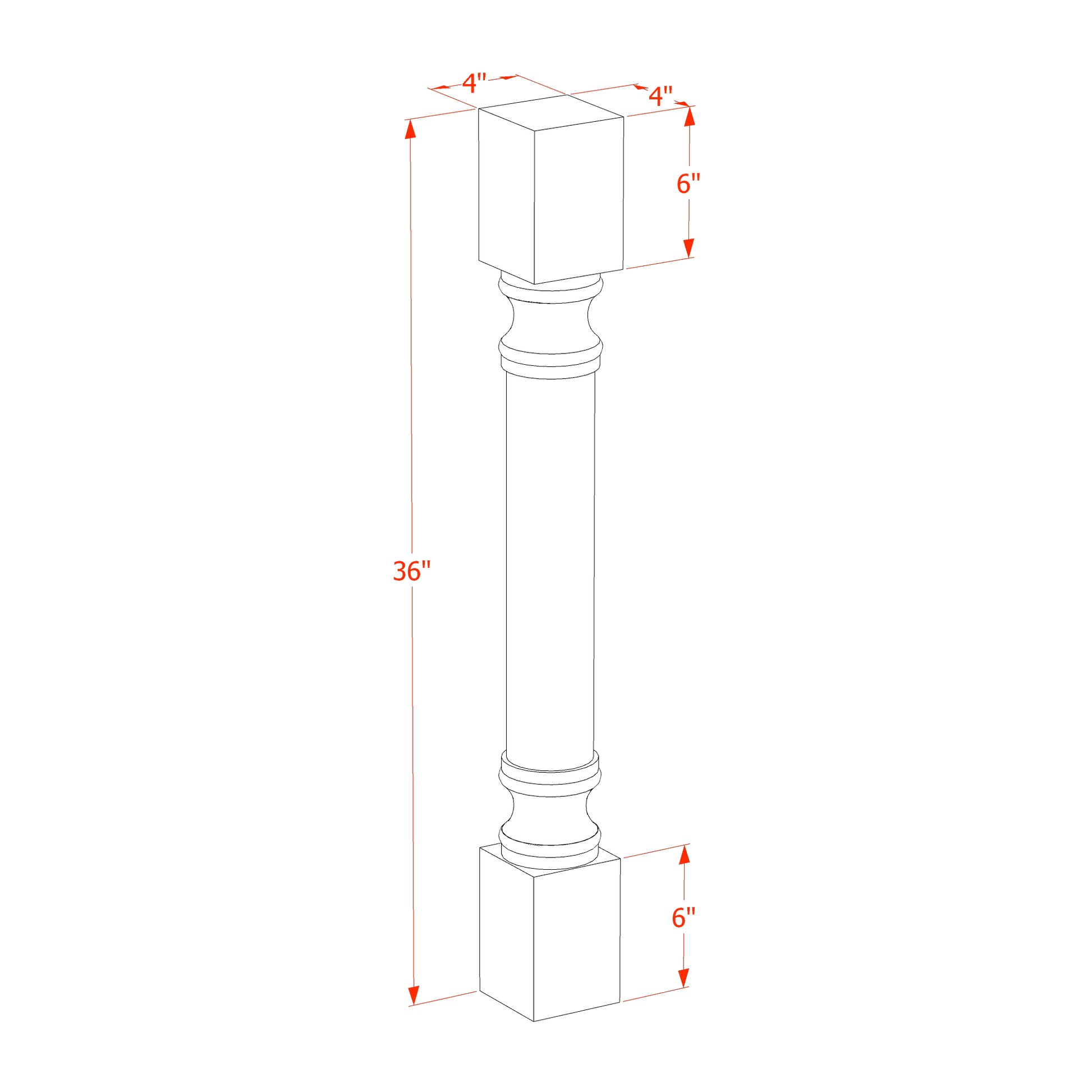 HLG-RP436: Light Gray Shaker 04"W x 36"H x 04"D Round Roman Pillar