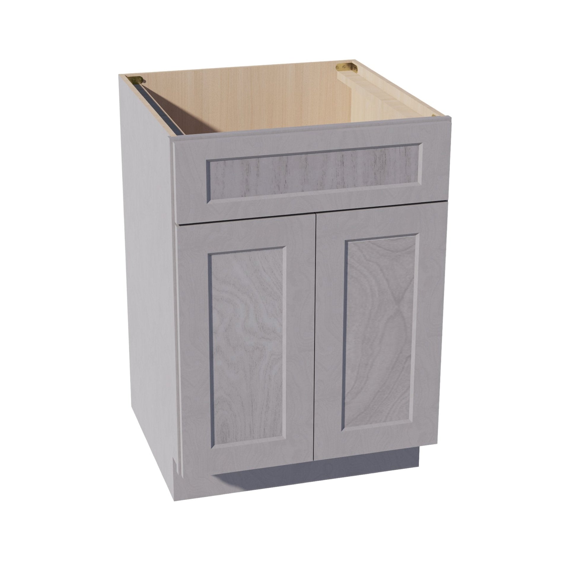 HLG-SB24: Light Gray Shaker 24" 2 Doors 1 False Drawer Sink Base Cabinet