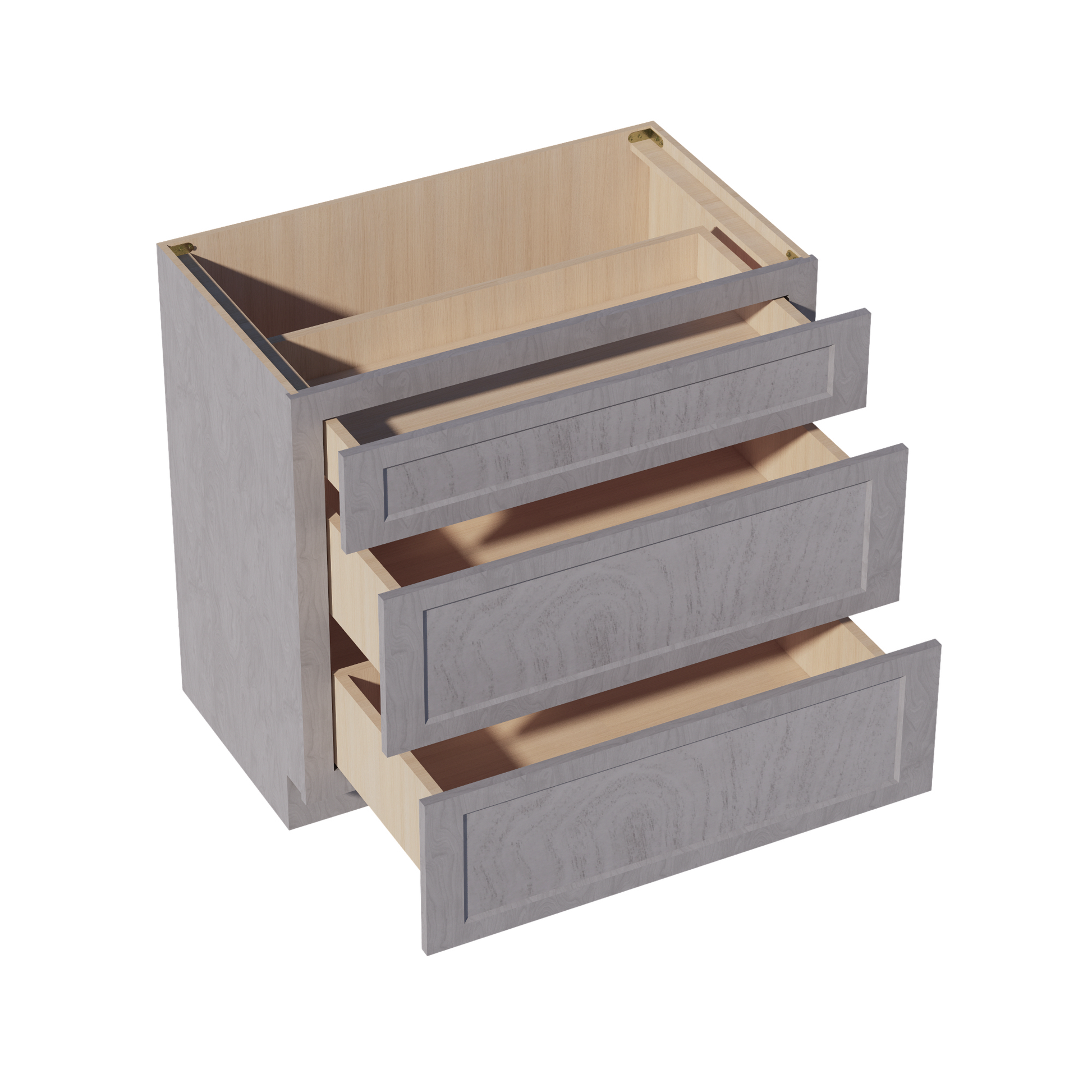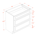 HLG-VDB3621: Light Gray Shaker 36"W x 34-1/2"H x 21"D 3 Drawers Vanity Base Cabinets