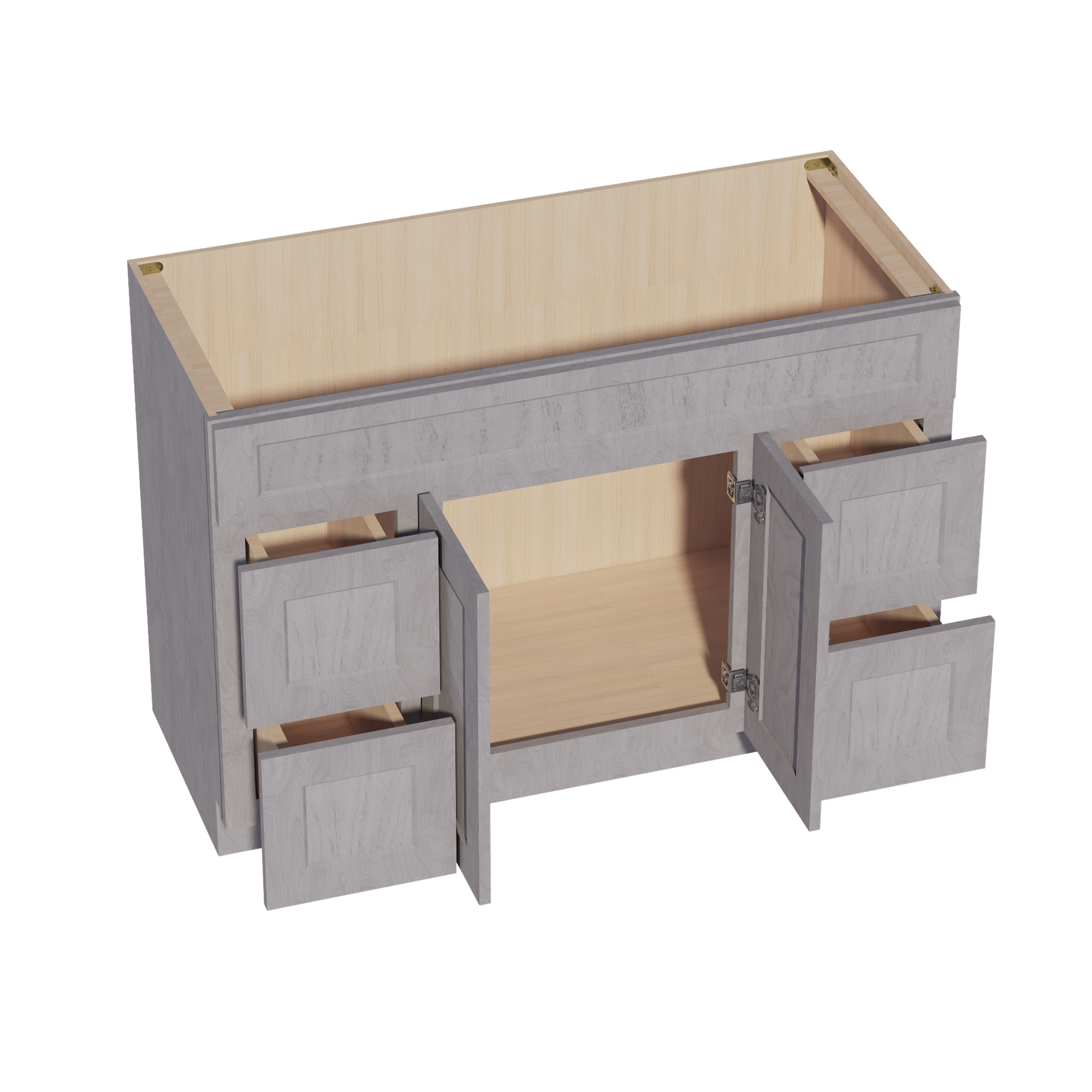 HLG-VSD4821: Light Gray Shaker 48"W x 34-1/2"H x 21"D 2 Doors, 4 Drawers & 1 False Drawer Centered Vanity Sink Base Cabinets