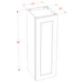HLG-W1236: Light Gray Shaker 12"W x 36"H 1 Door & 2 Shelves Standard Wall Cabinet